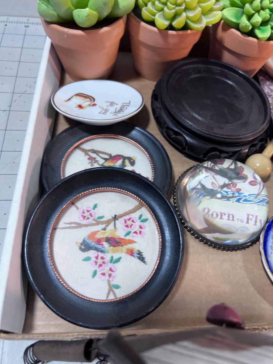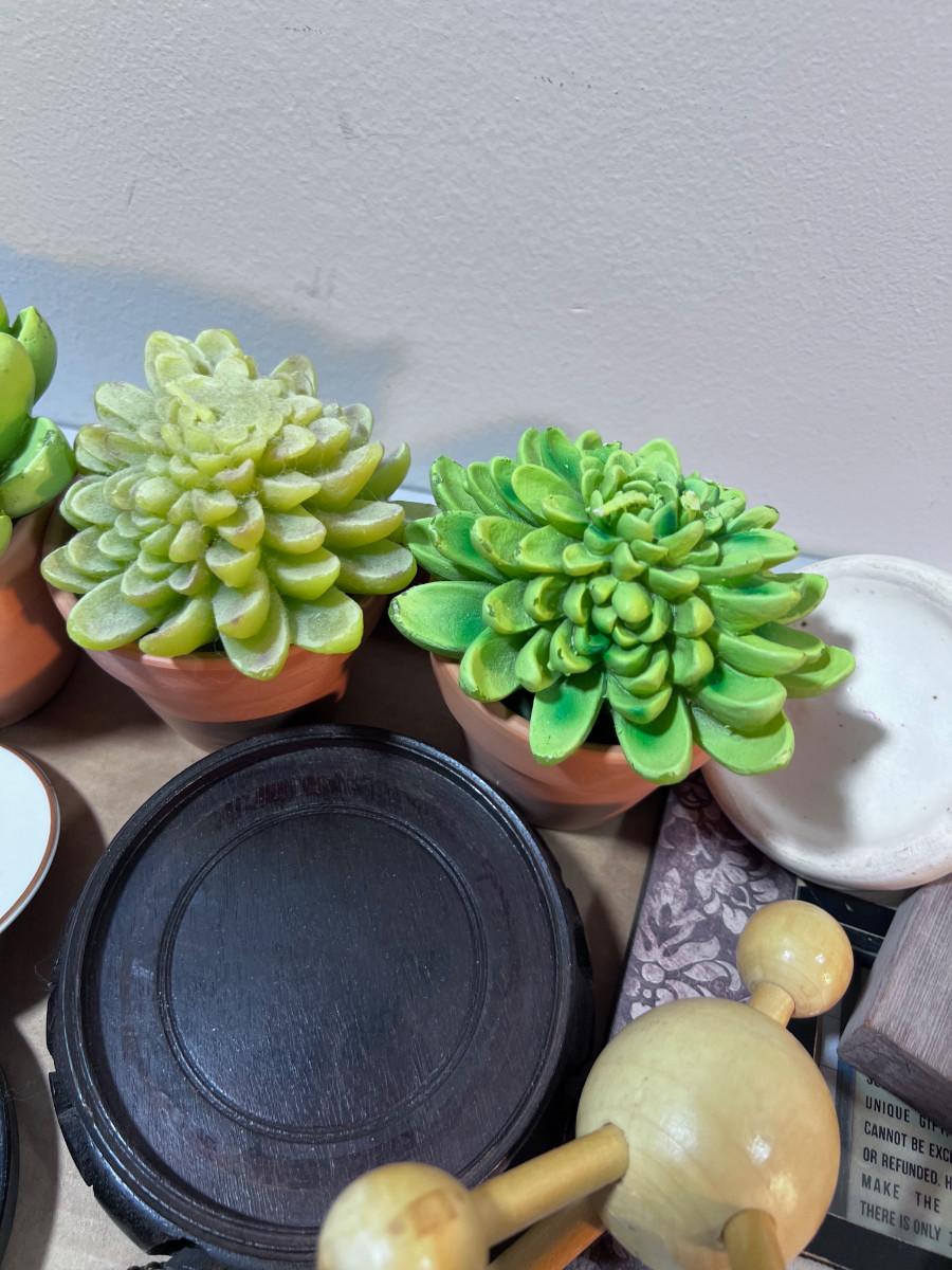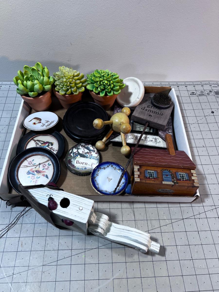 Decorative Items: Succulents, Flower Frog, Super Small Bird House