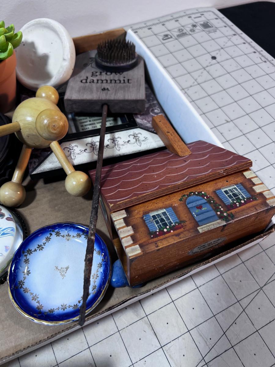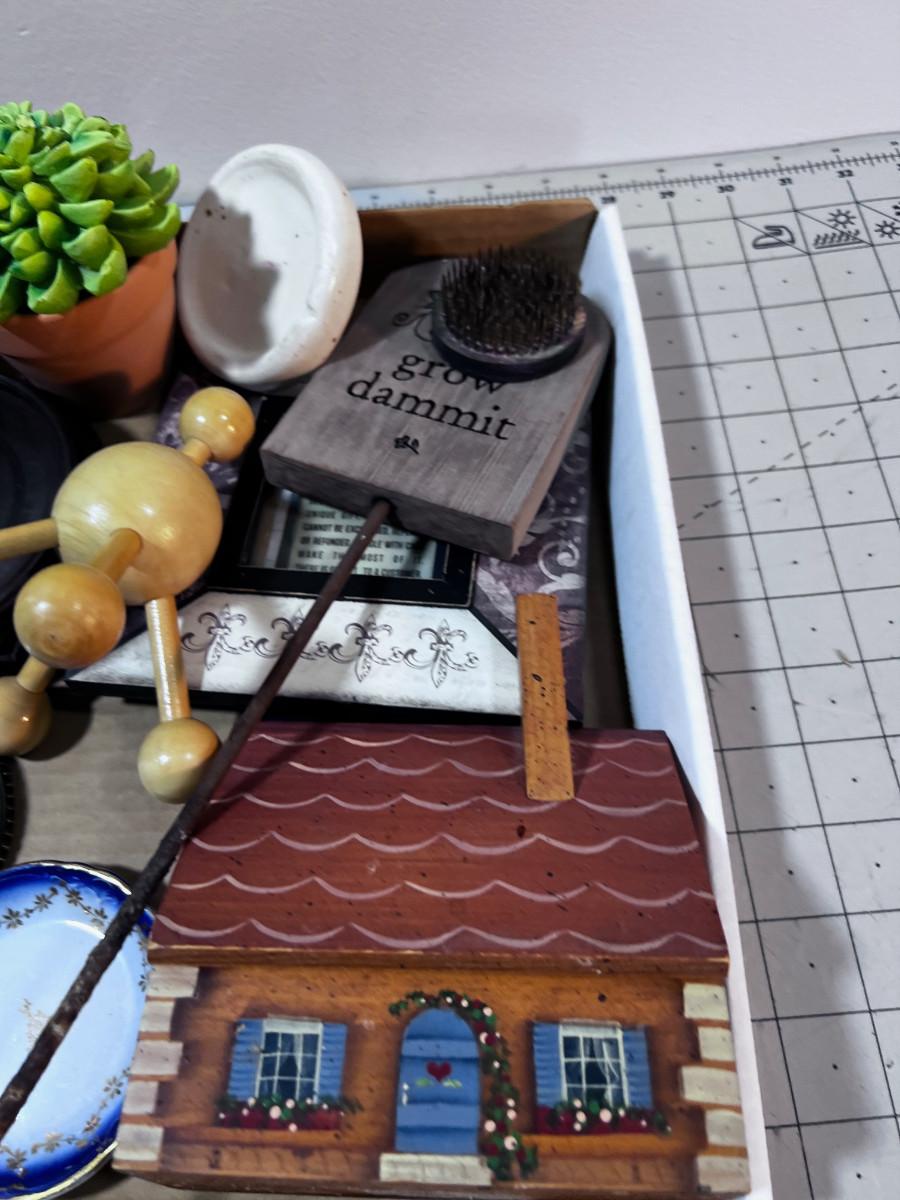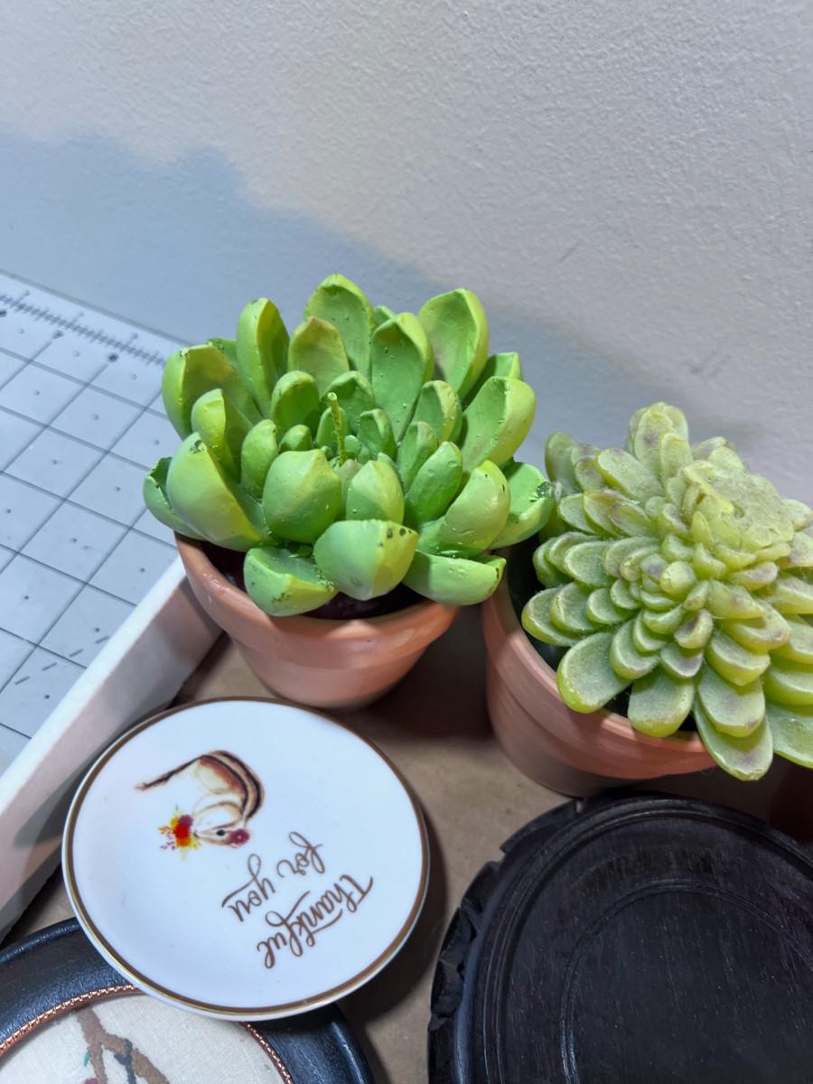 Decorative Items: Succulents, Flower Frog, Super Small Bird House