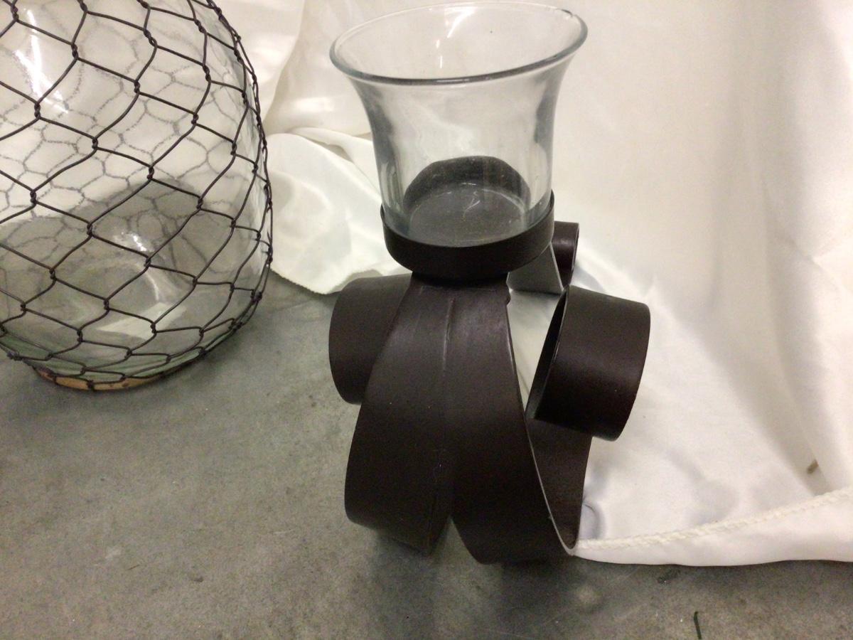 You get this glass just with wire on it and two table top metal and glass candle holder.