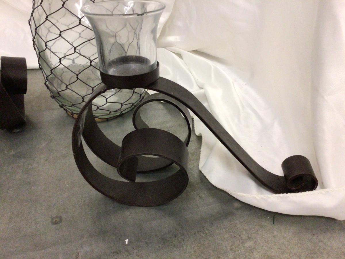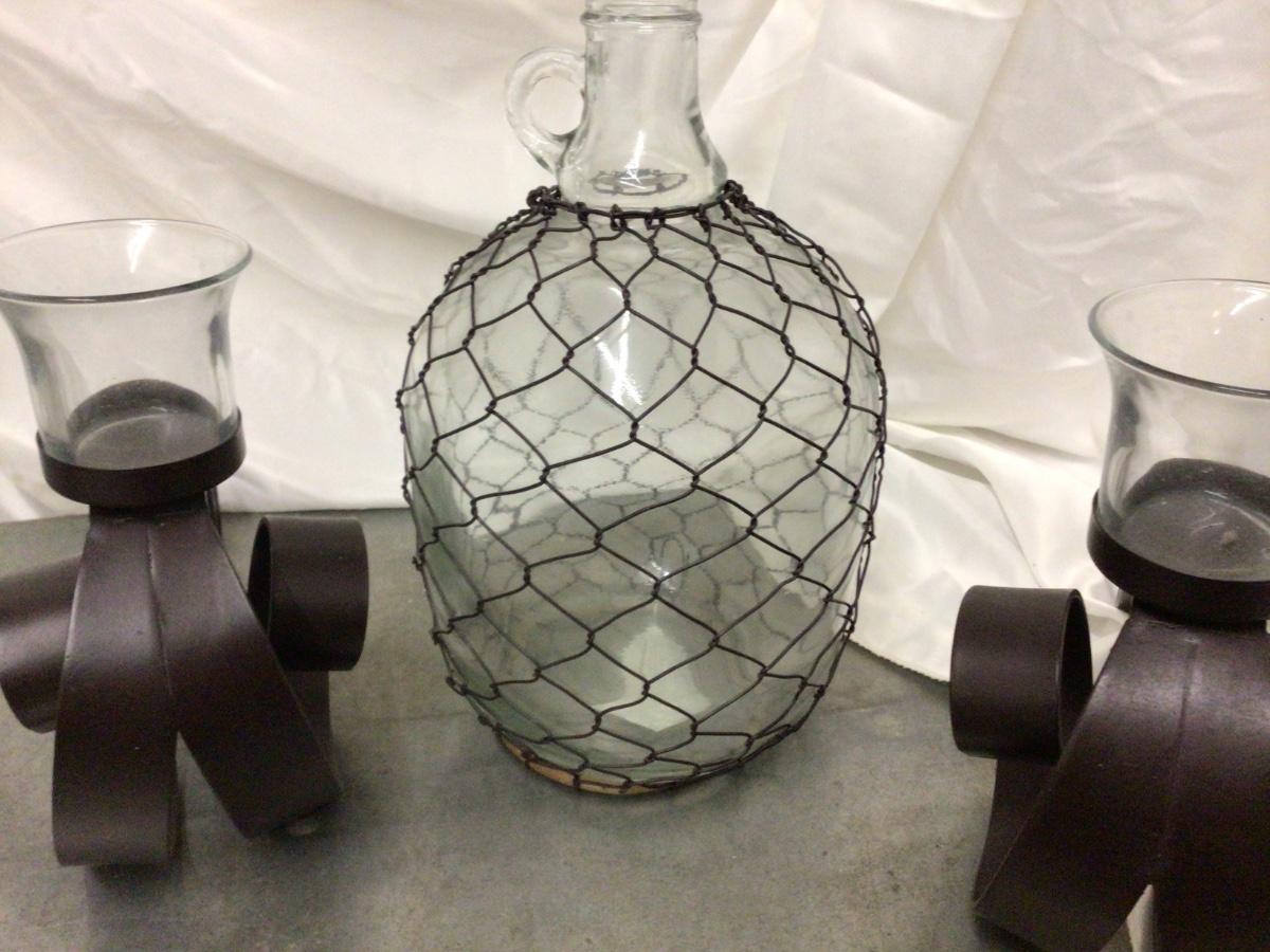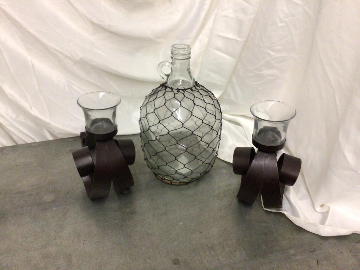 Decorative Jug With Wire and Set of Metal Candle Holders