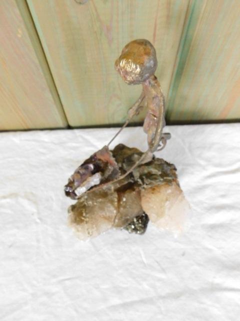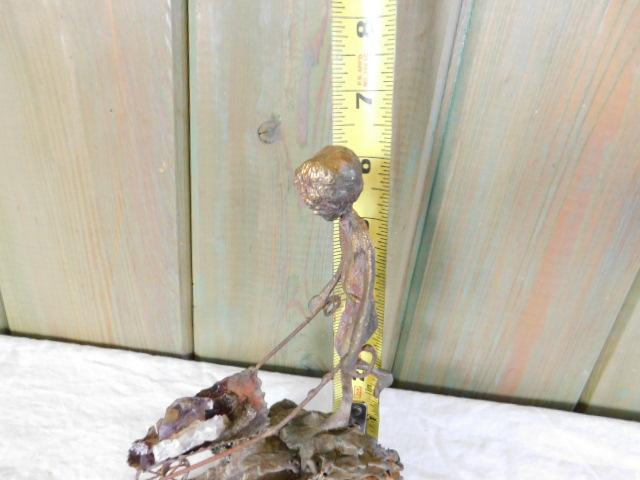 Decorative Hand Forged Brass Figurine on a Mineral and Stone Base