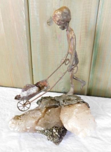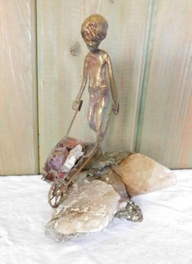 Decorative figure made of metal and stone. Measures approx. 6 inches high, 4 inches across at base.
