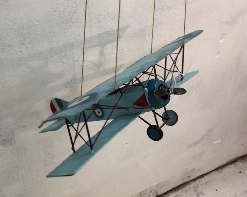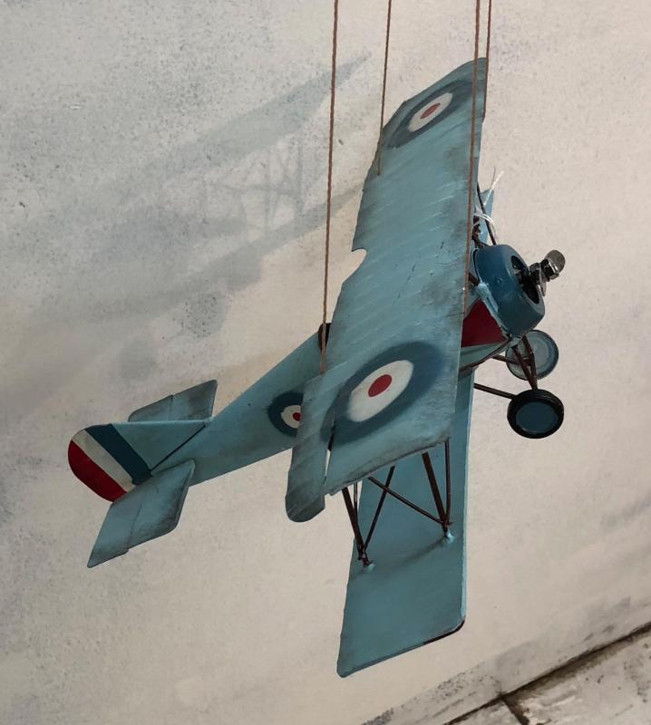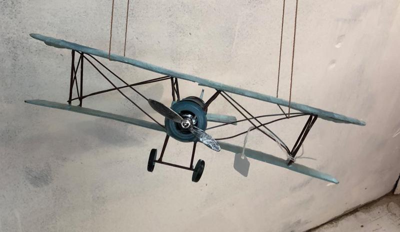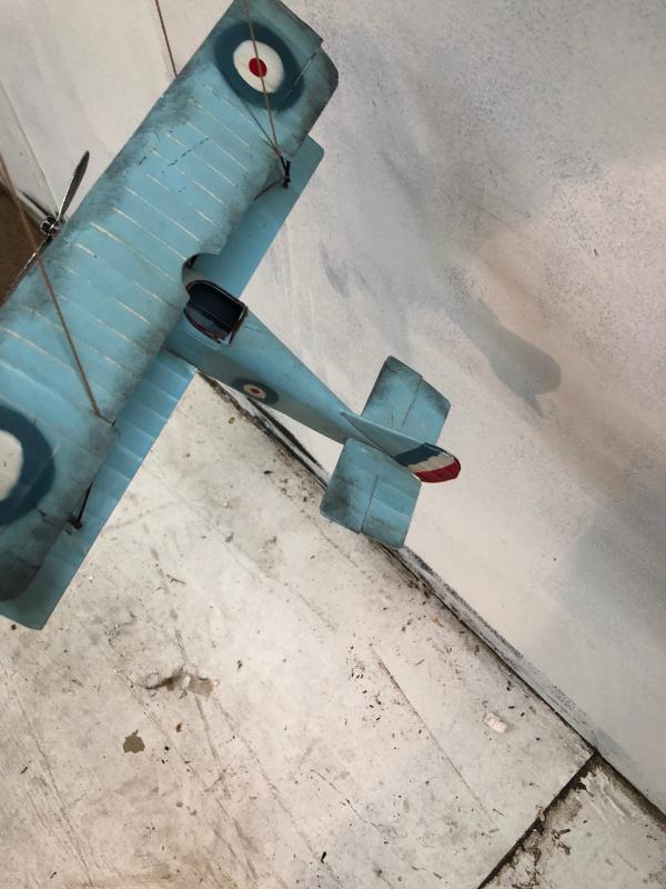 Decorative metal plane, hangs from ceiling, 13" wing span.