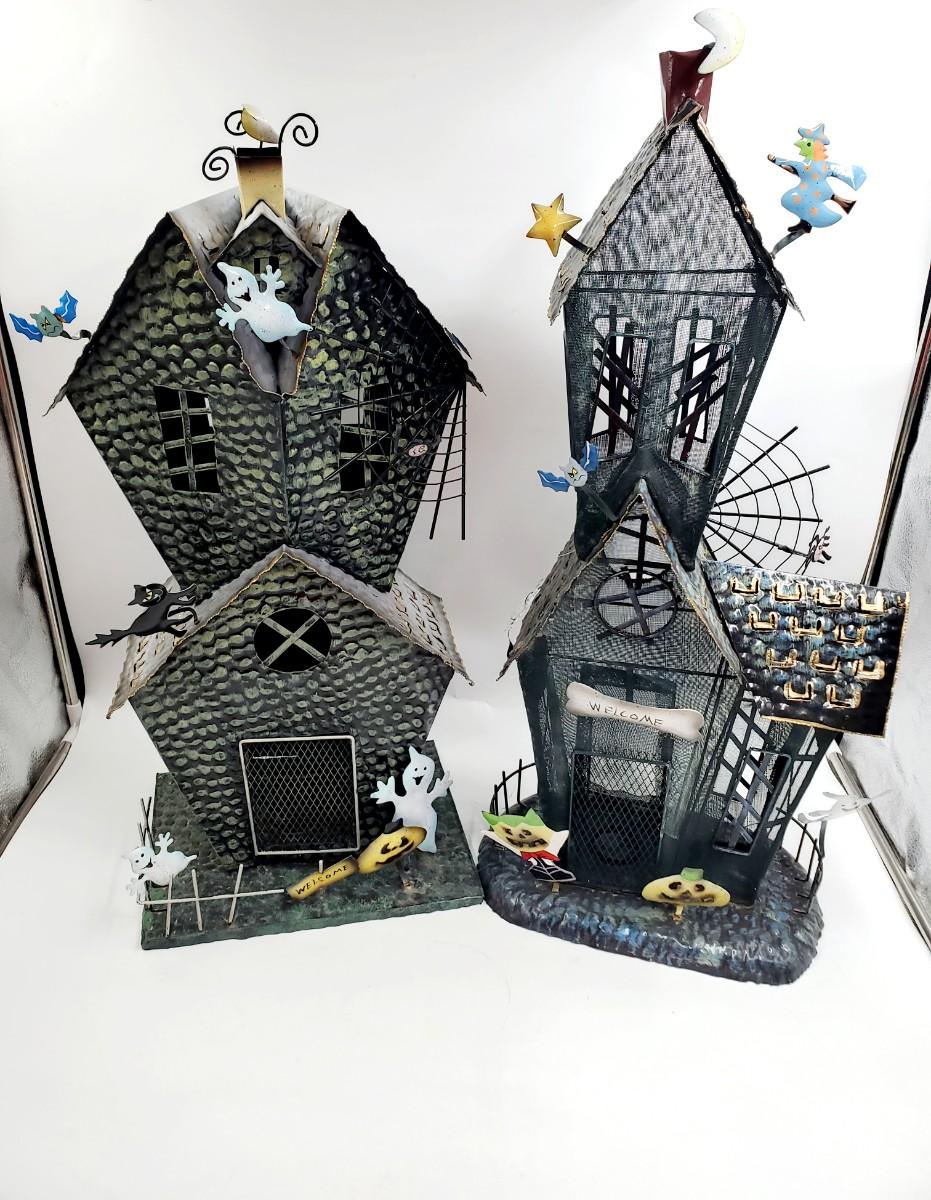 DECORATIVE METAL HALLOWEEN SCENE CANDLE HOLDERS