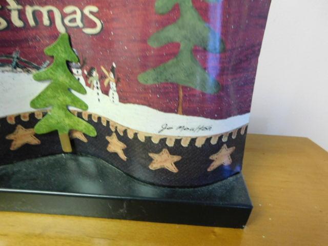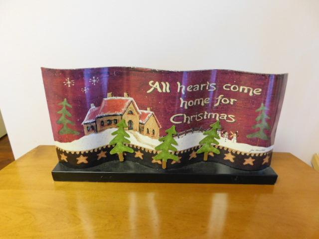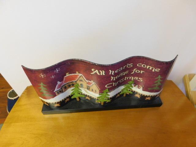 Decorative Metal Holiday Sign with Wood Base 18"x9"