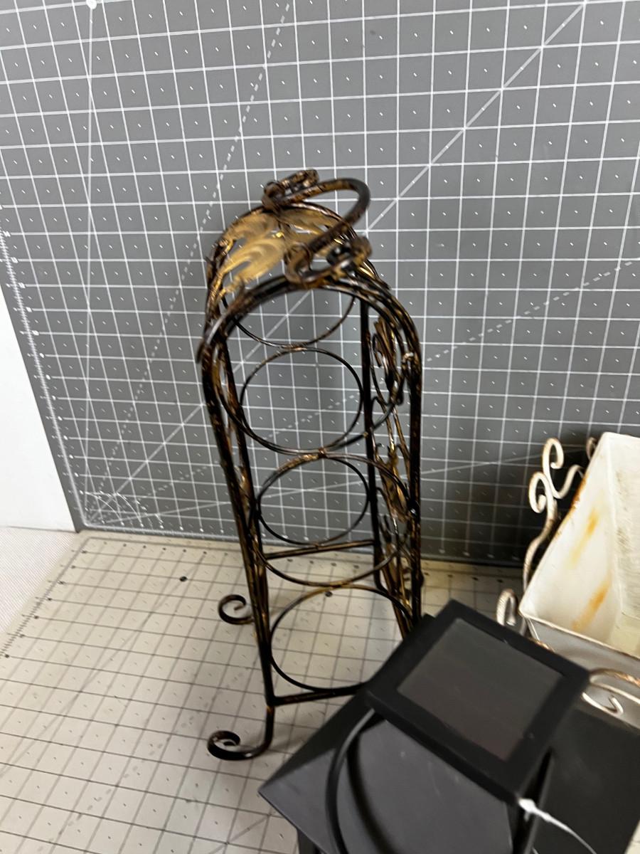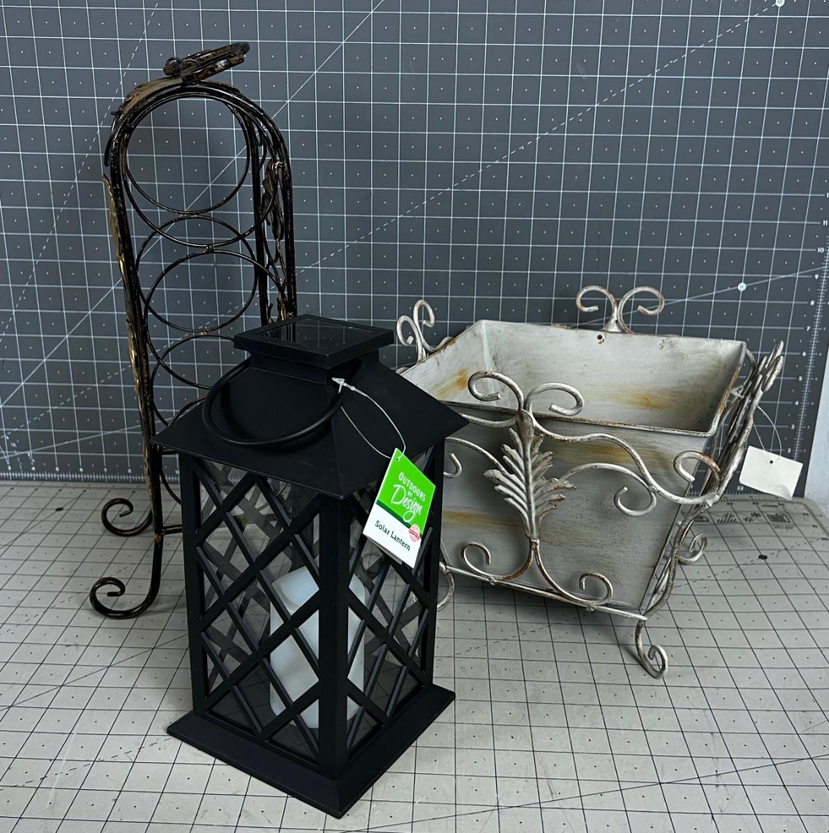 Decorative Metal Item: Candle Lantern, Wine Etc. (3 pieces)
