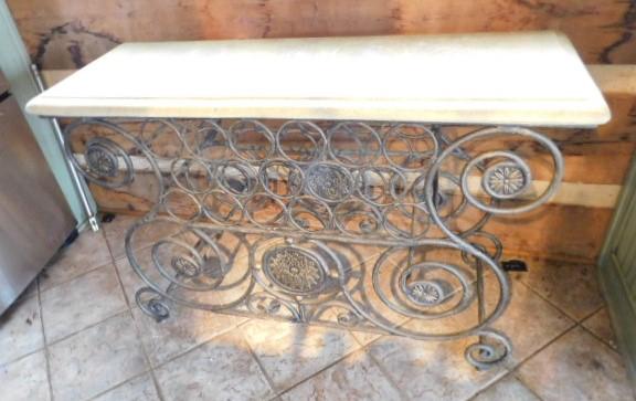 Decorative Metal Wine Rack and Bar with Composite Faux Stone Top 51"x19"x33"