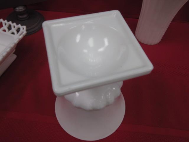 Decorative Milk Glass Vase/ Fluted Milk Glass Vase/Milk Glass Dish, 3 pcs
