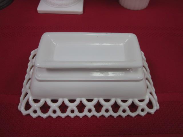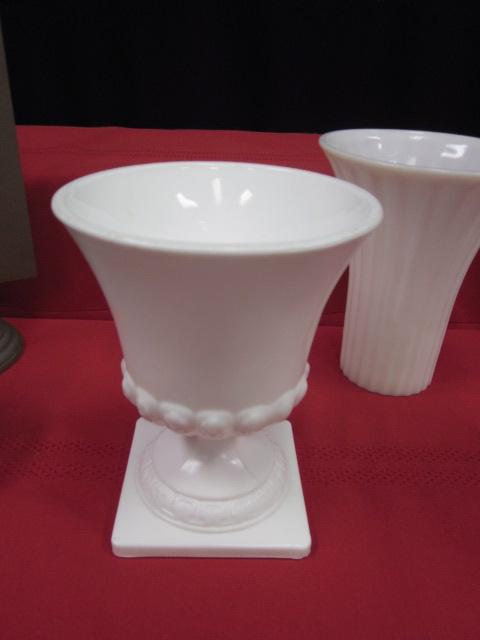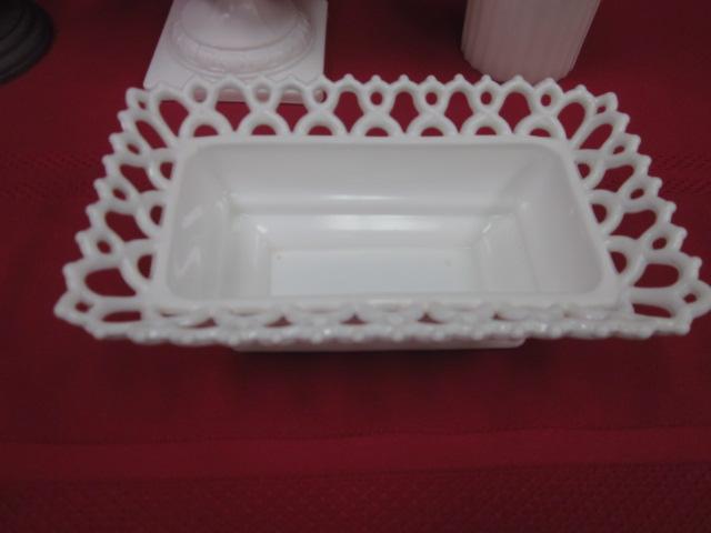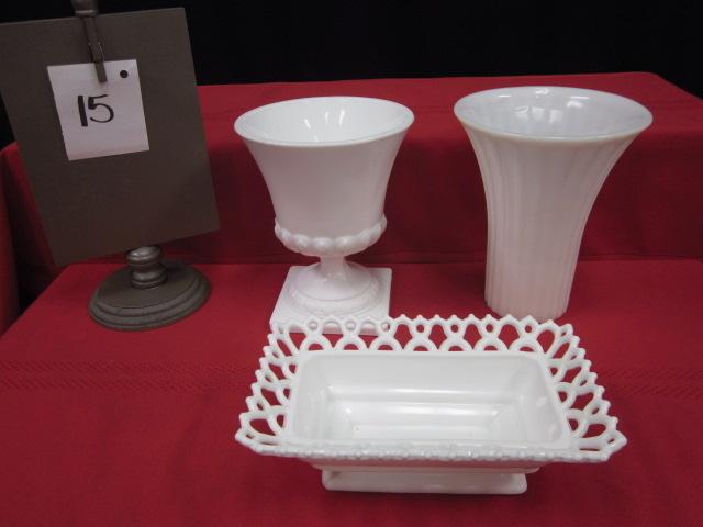 Decorative Milk Glass Vase, Decorative Fluted Milk Glass Vase, Decorative Milk Glass Dish, 3 pcs