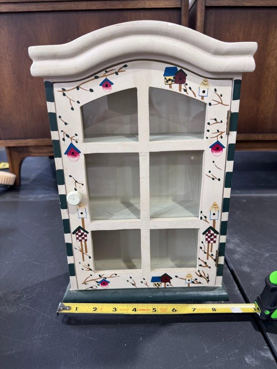 Purpose: It's designed to display small collectibles, figurines, or other decorative items on its interior shelves.