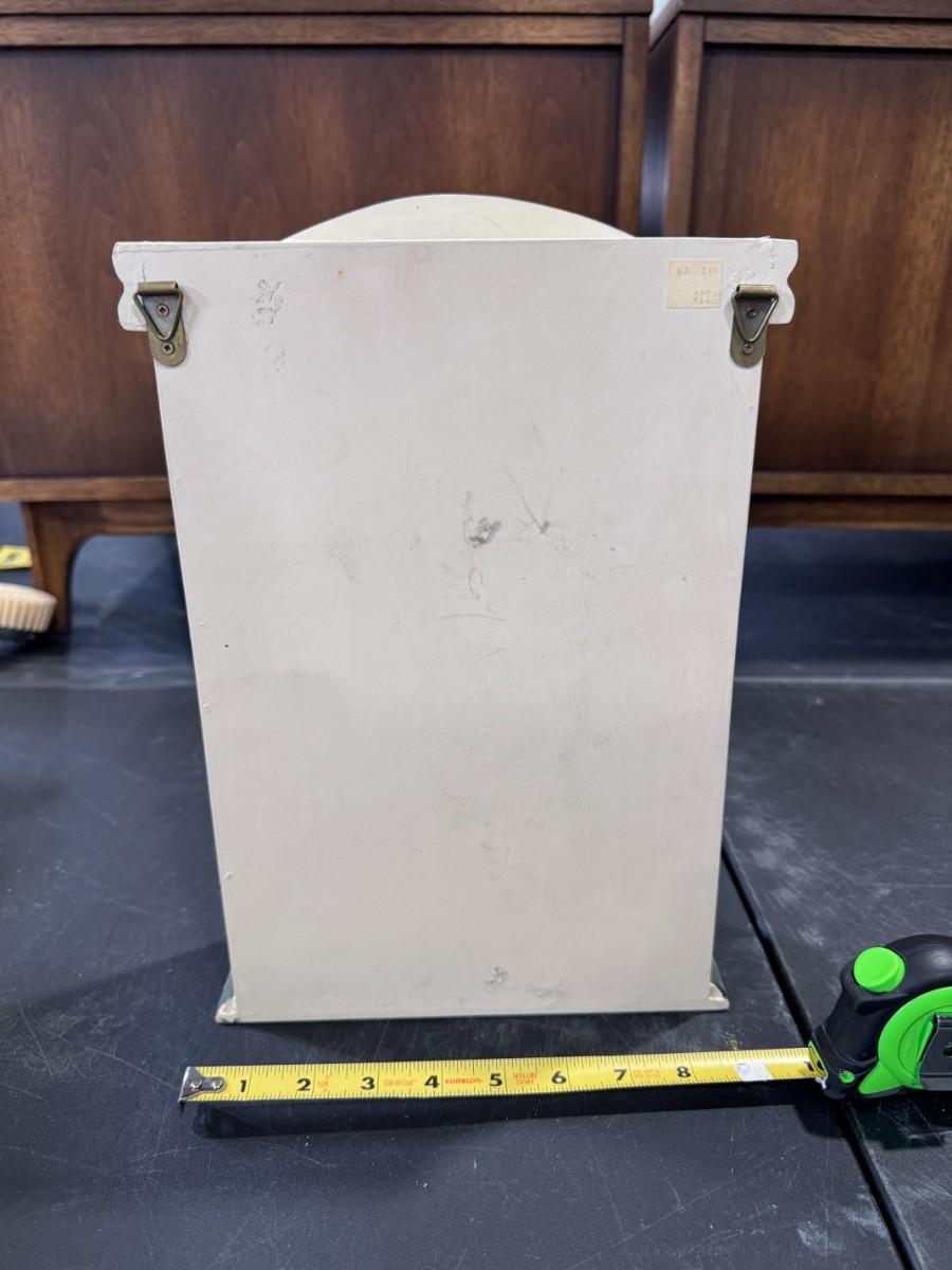 Style: The one pictured has a vintage or farmhouse aesthetic with a rounded top and a distressed or painted finish