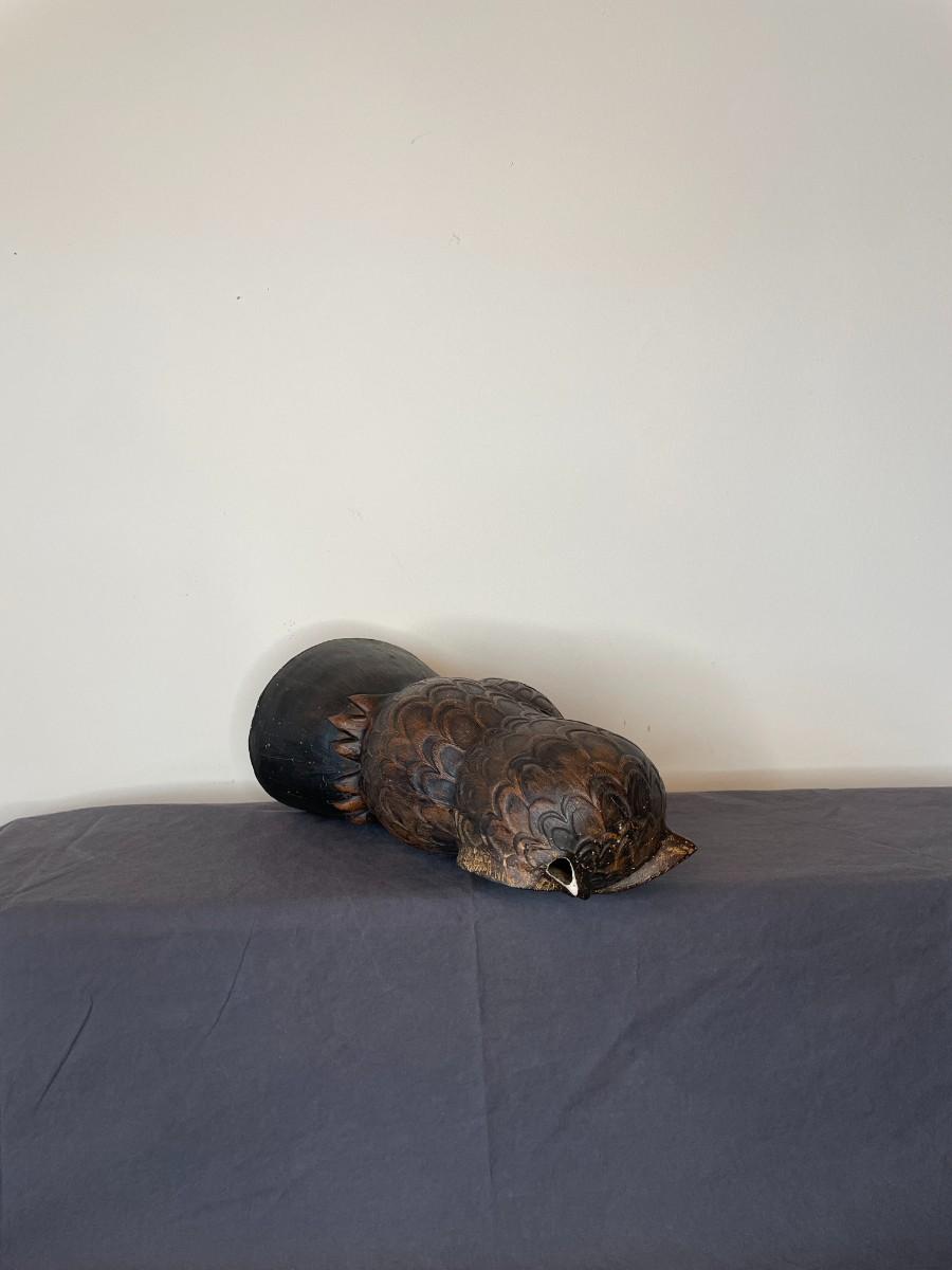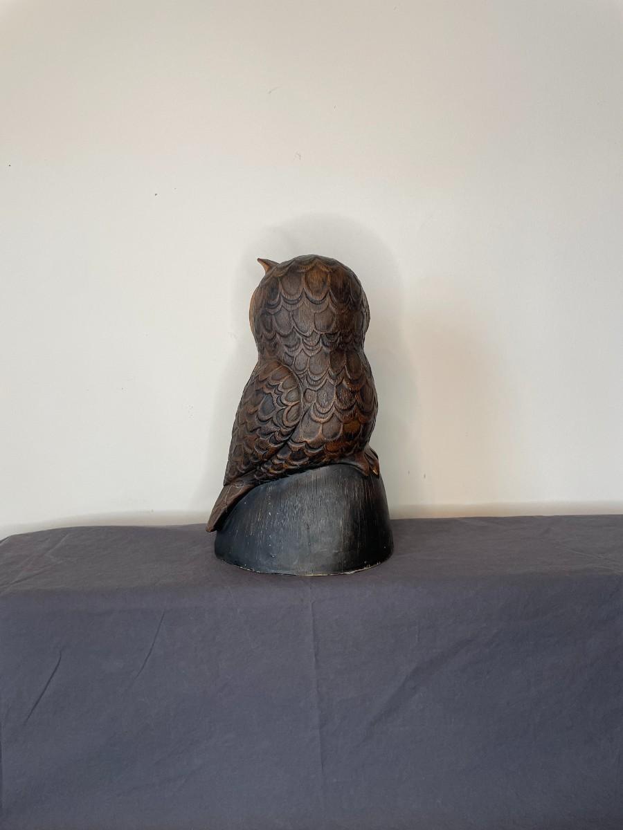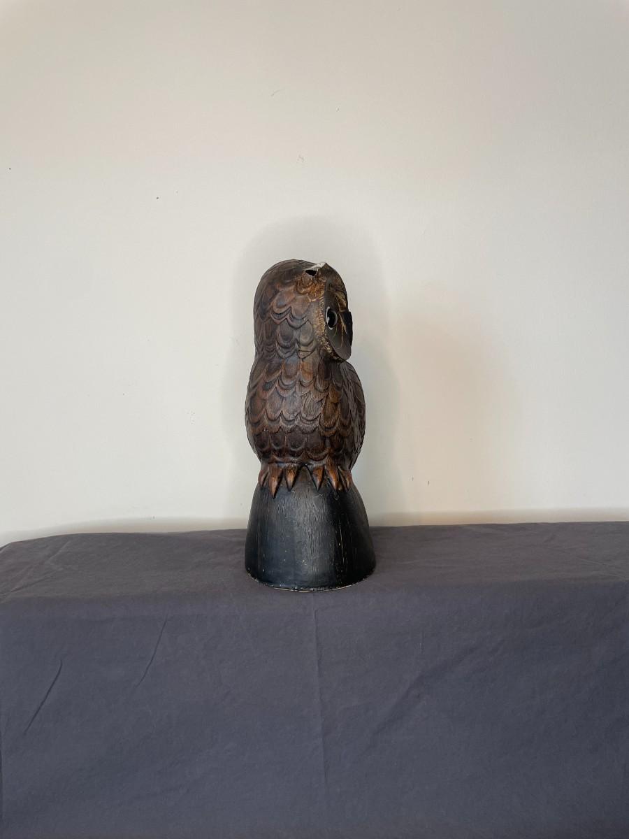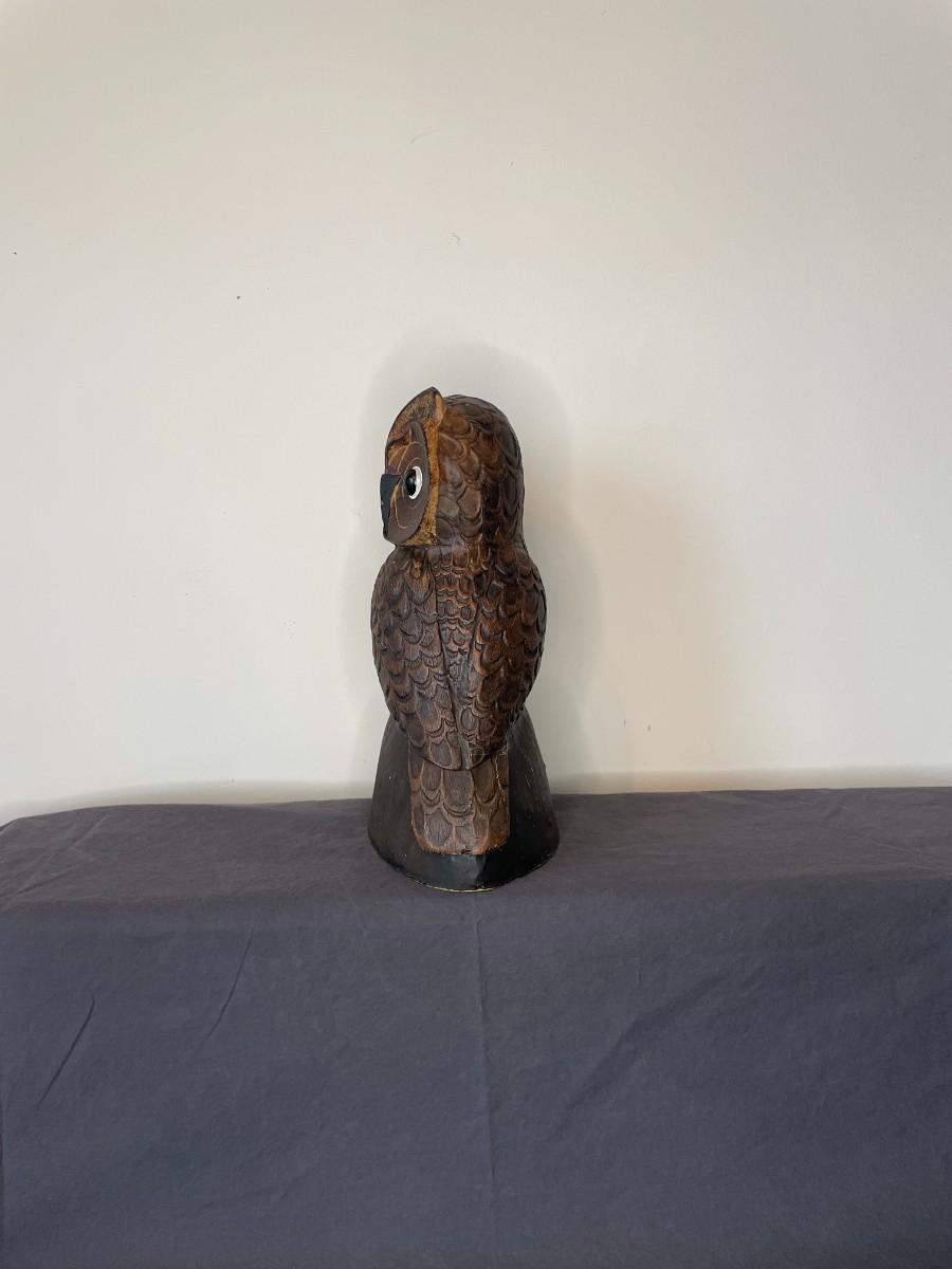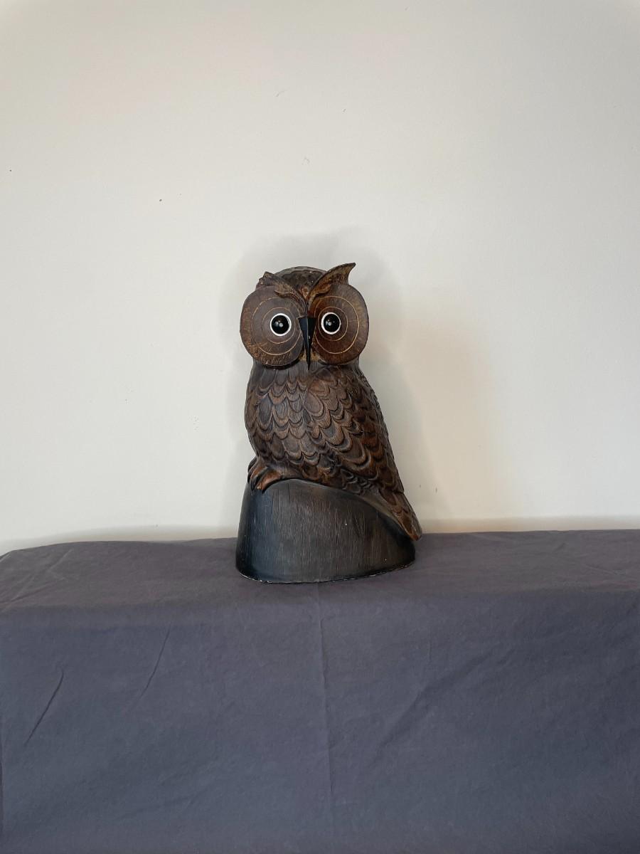 Wooden owl measuring 10"H. Has one broken ear.