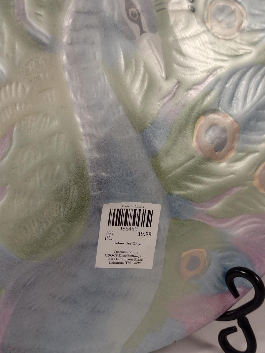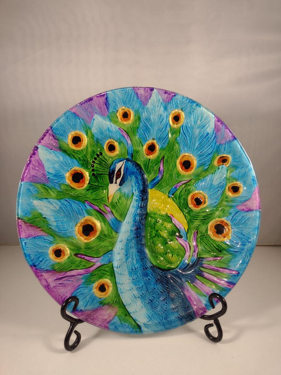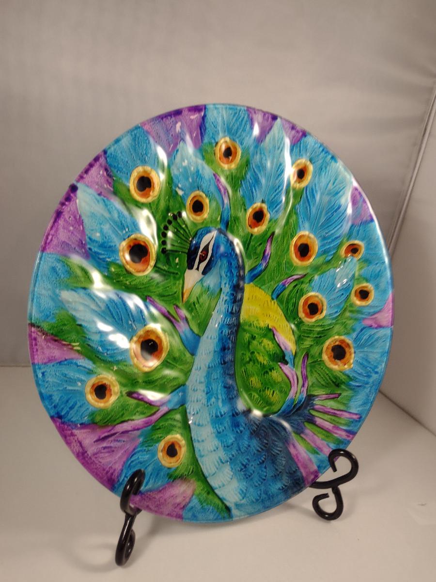 Decorative Peacock Design Glass Plate- Approx 11 3/4" in Diameter