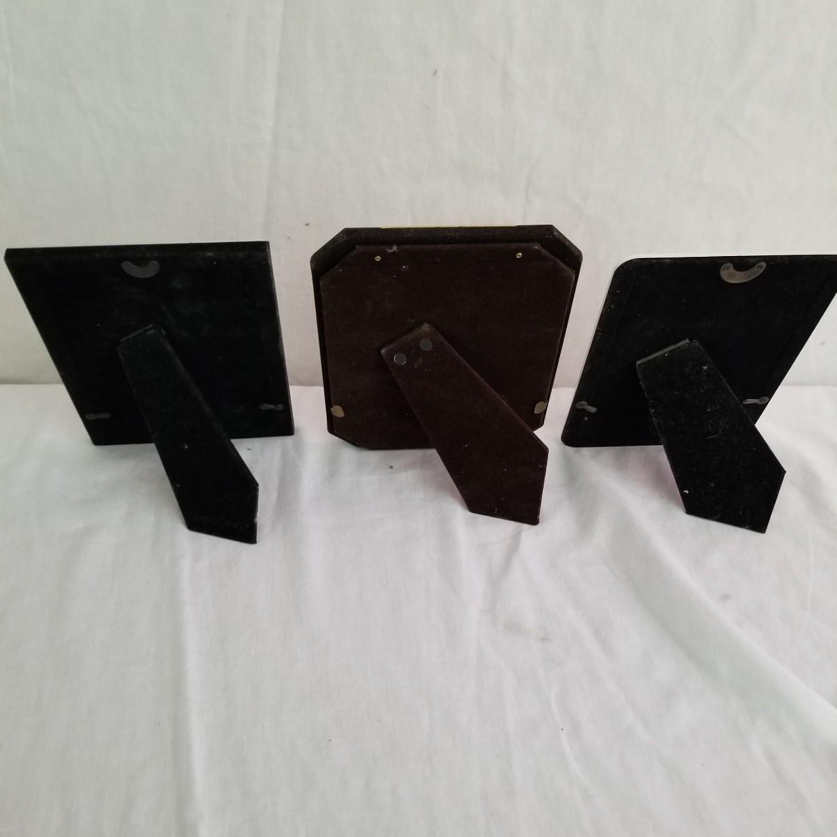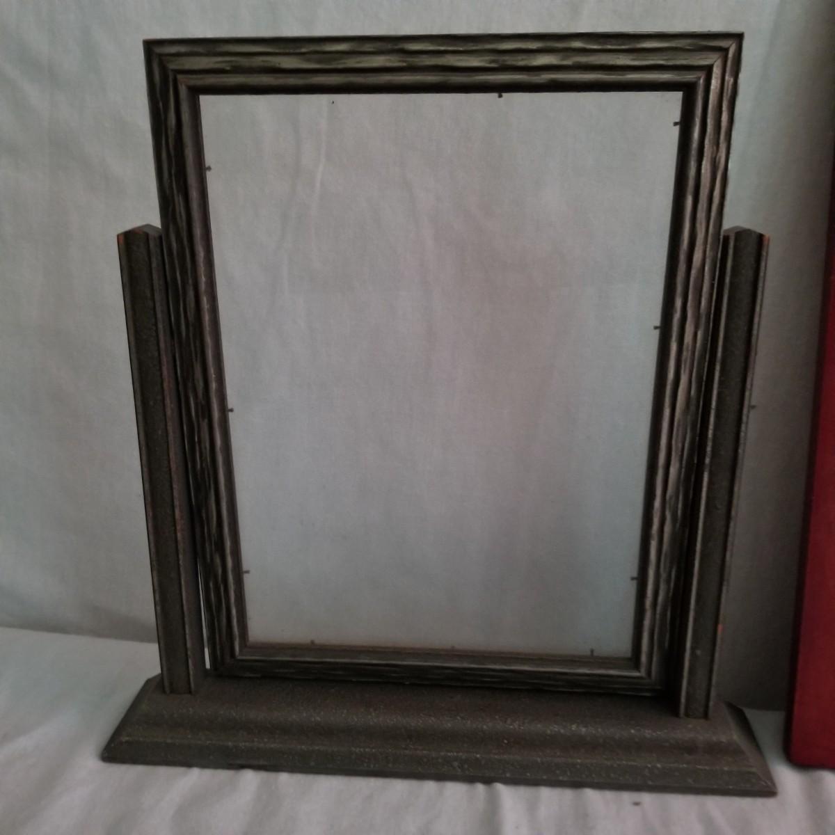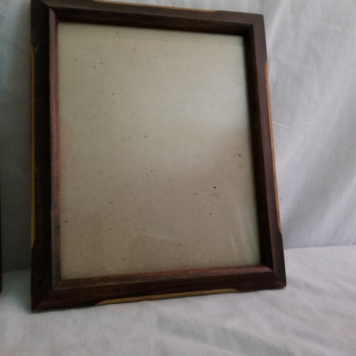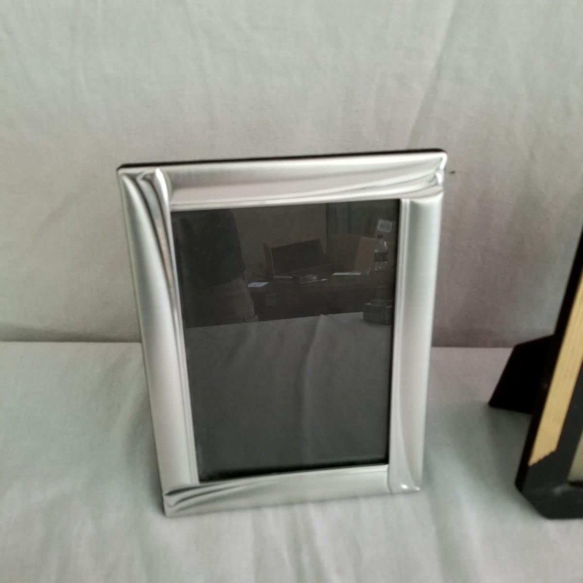 Ten different types and styles of photos frames, most are stand up with arm on back. Sizes range from 3" x5" to 11.5"x 13.5". Brass, wood and ceramic. See photos for details. Shipping available.