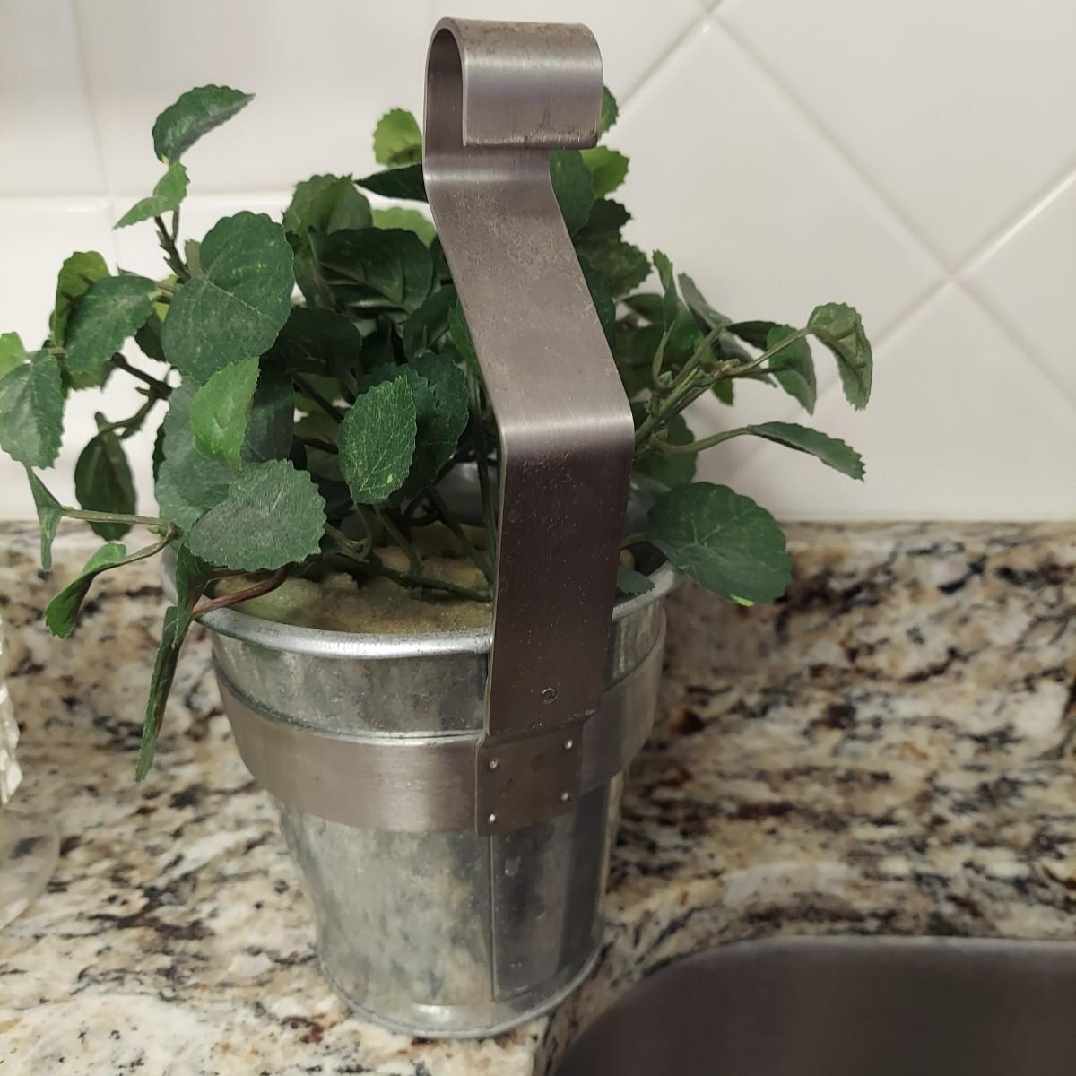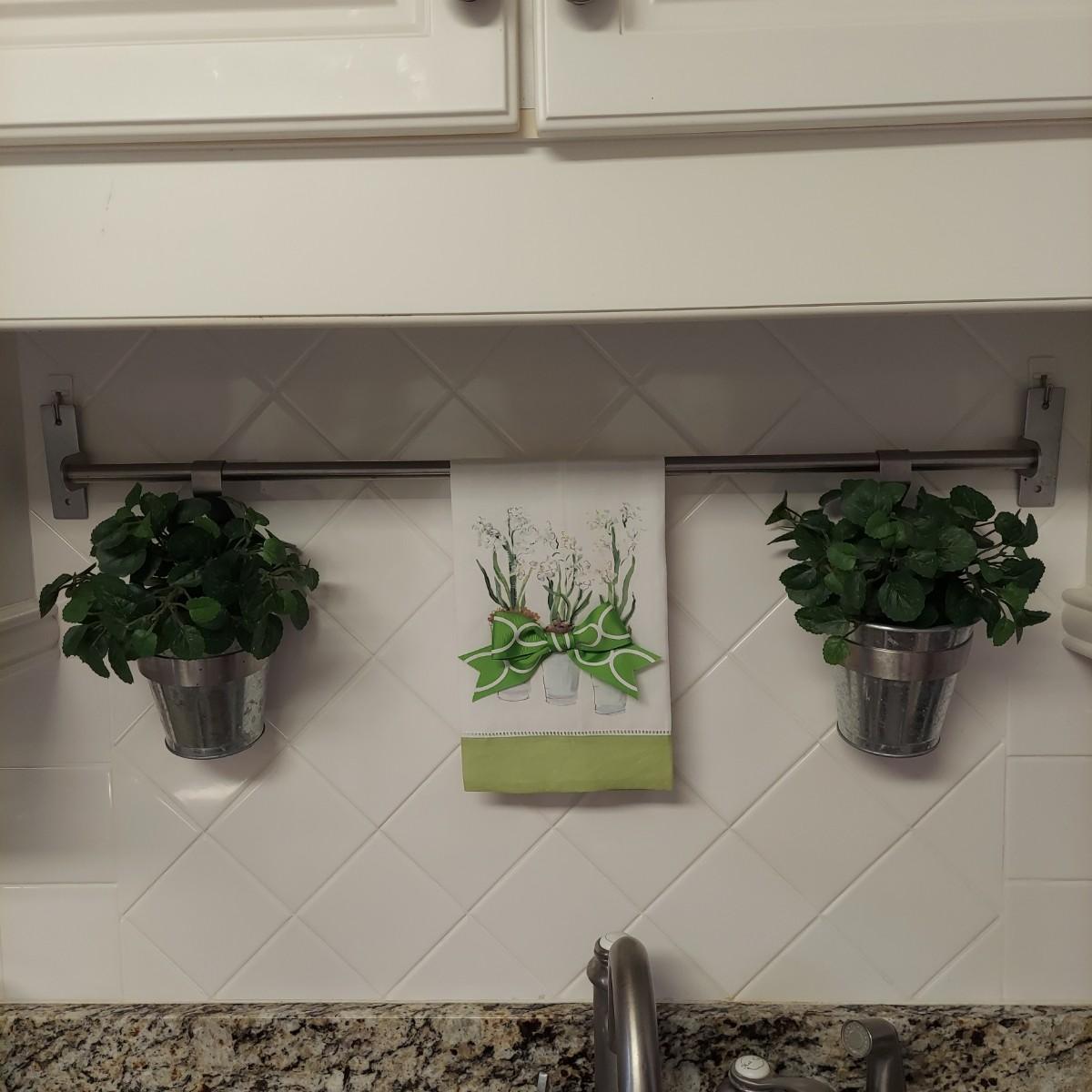 Decorative rod for hanging small planters and kitchen towel. Could also function as a small pot rack. Shown over kitchen sink. Can be used anywhere. Includes all items shown. Measures approximately 34.5" long. Local Pickup Only.