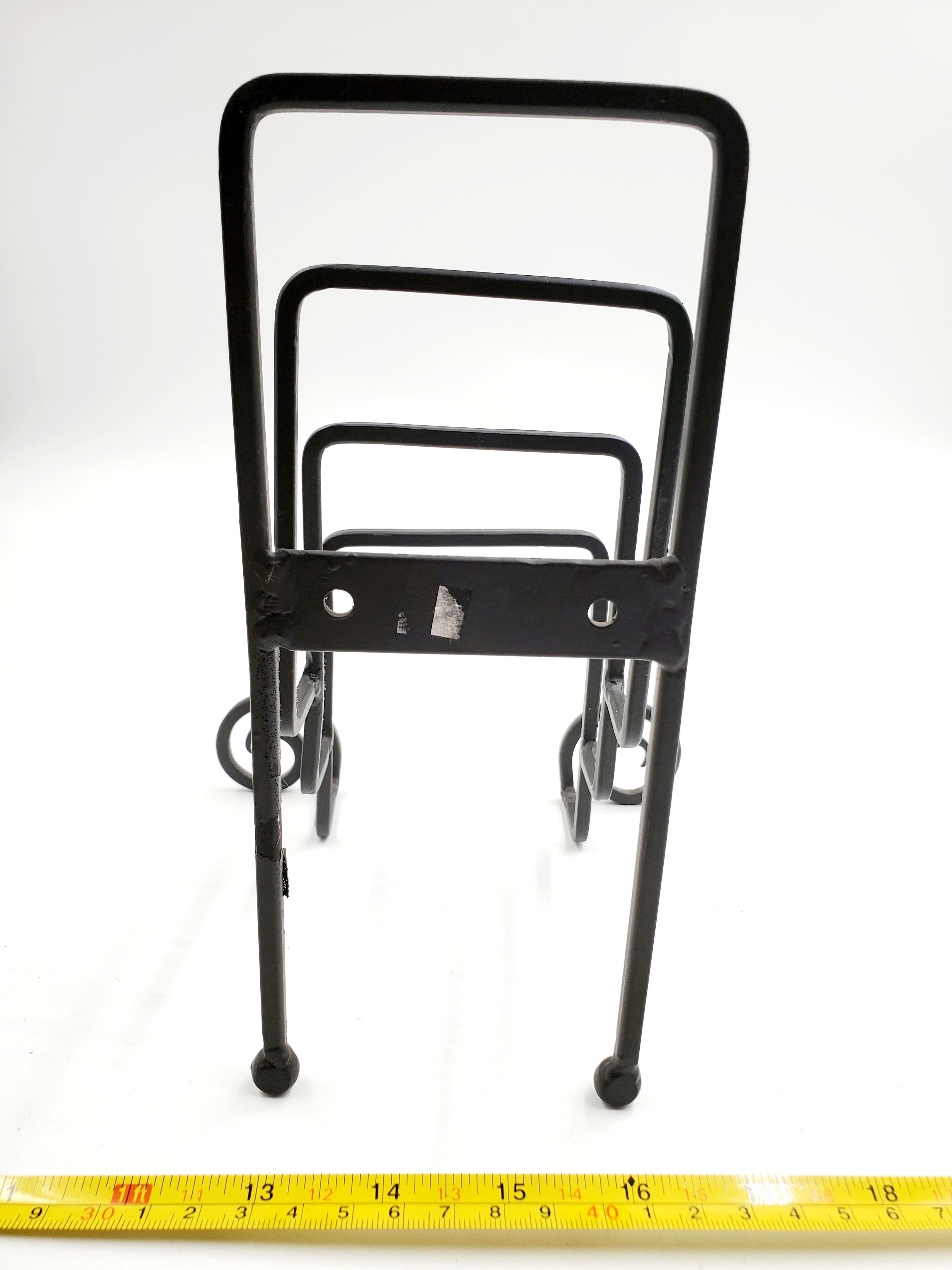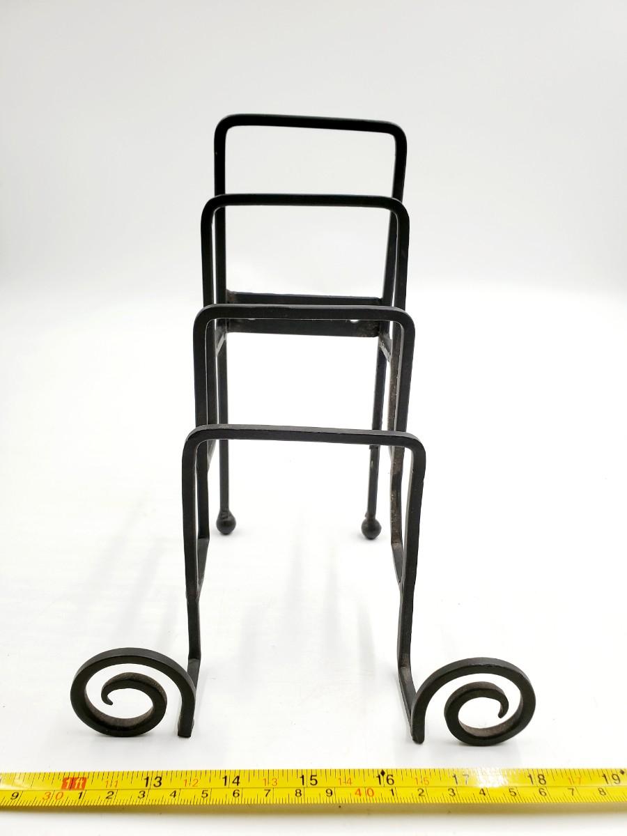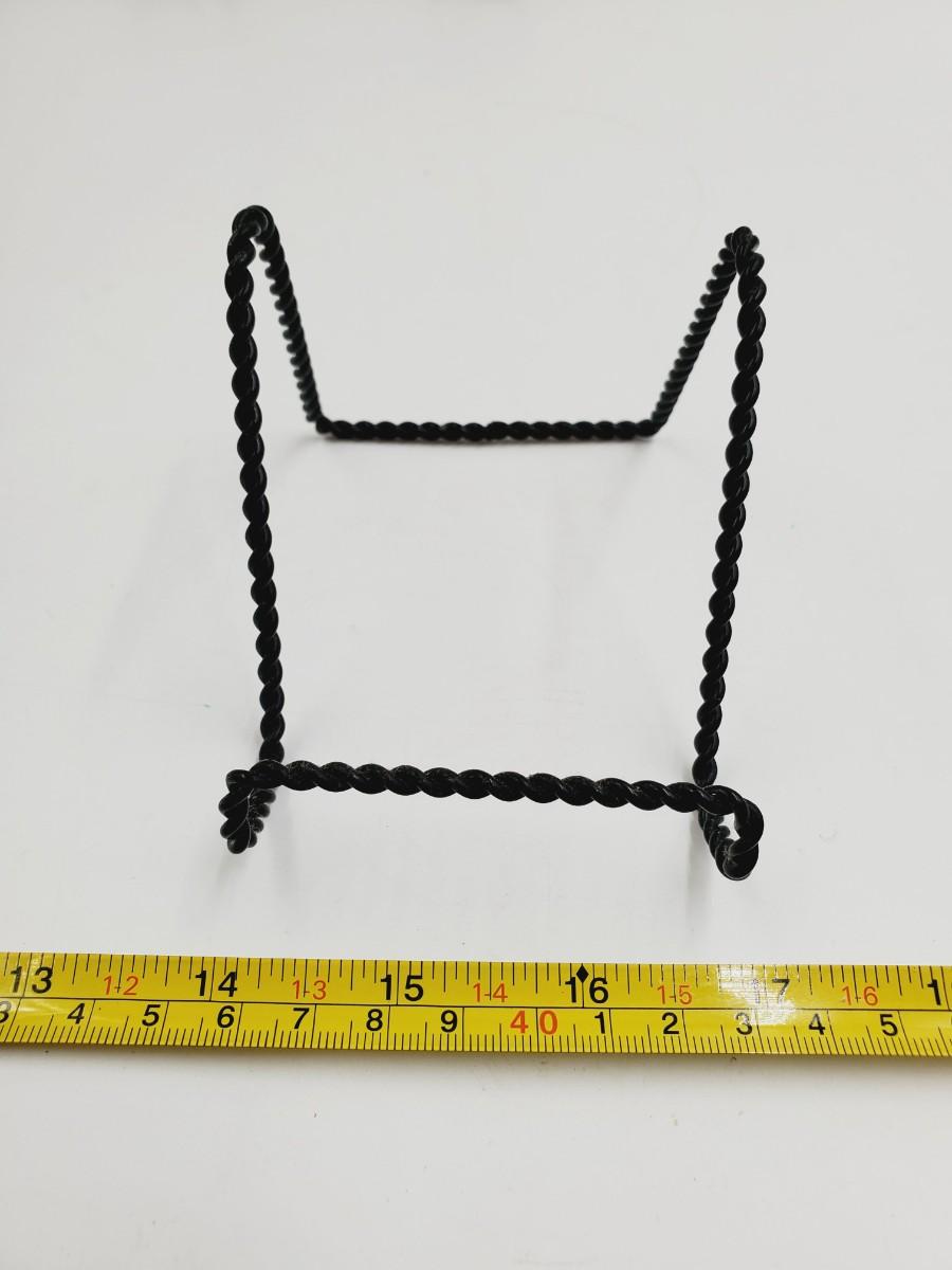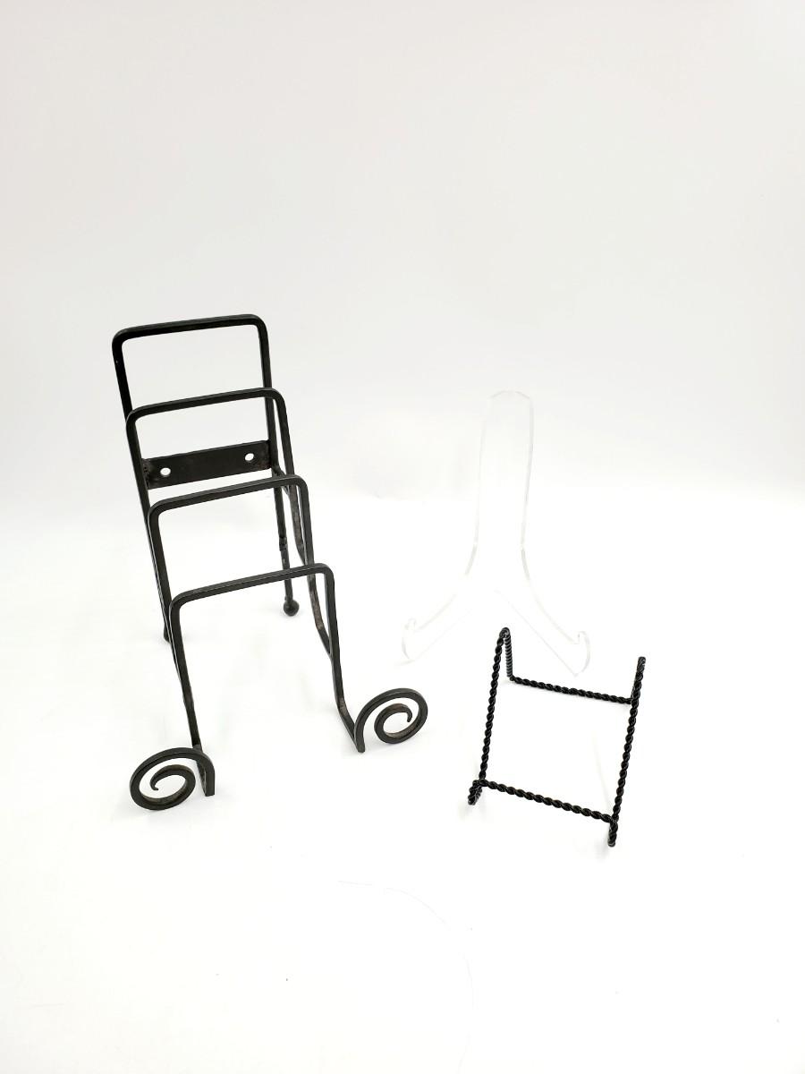 1 small decorative metal single plate stand, 1 plastic plate stand