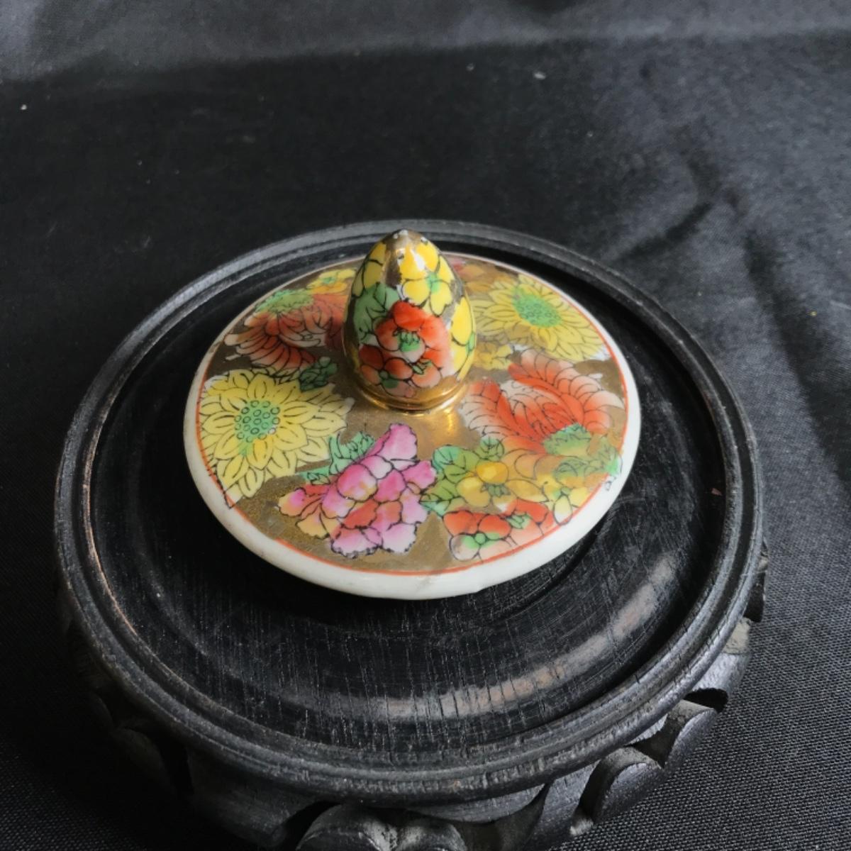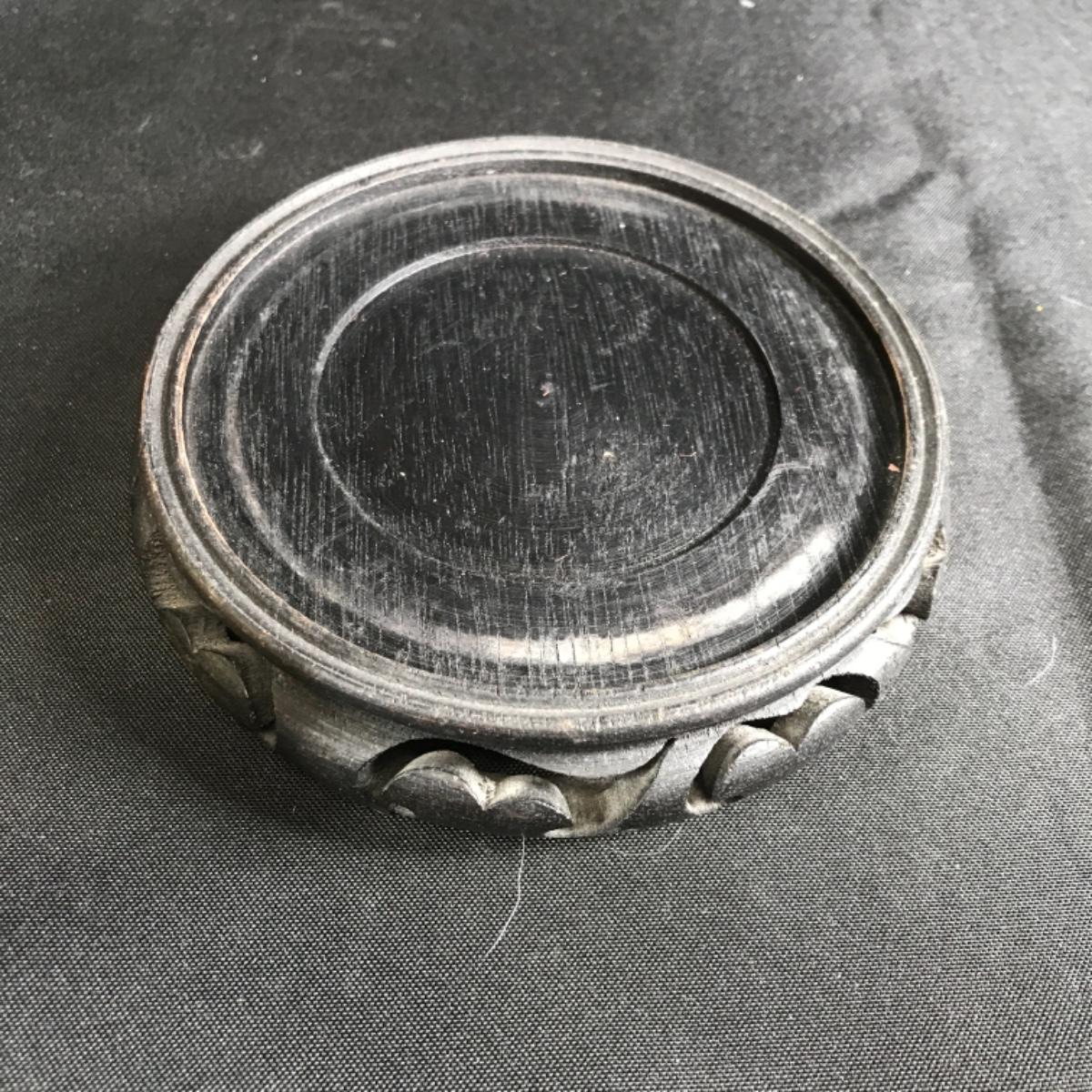 Good condition overall with no visible damage. There is a motif on the bottom; see pictures. About 12" size, comes with wood display base.