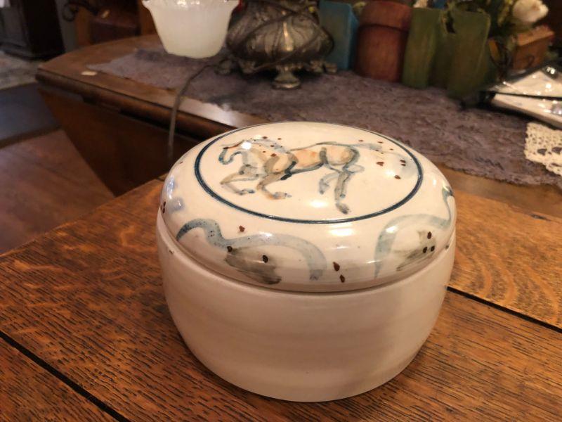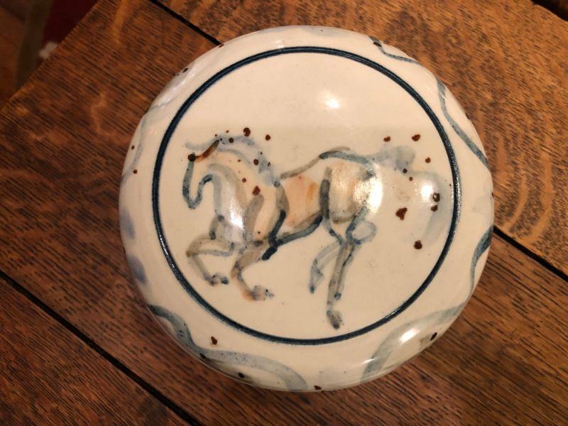 POTTERY BOWL WITH LID OF A PAINTED HORSE