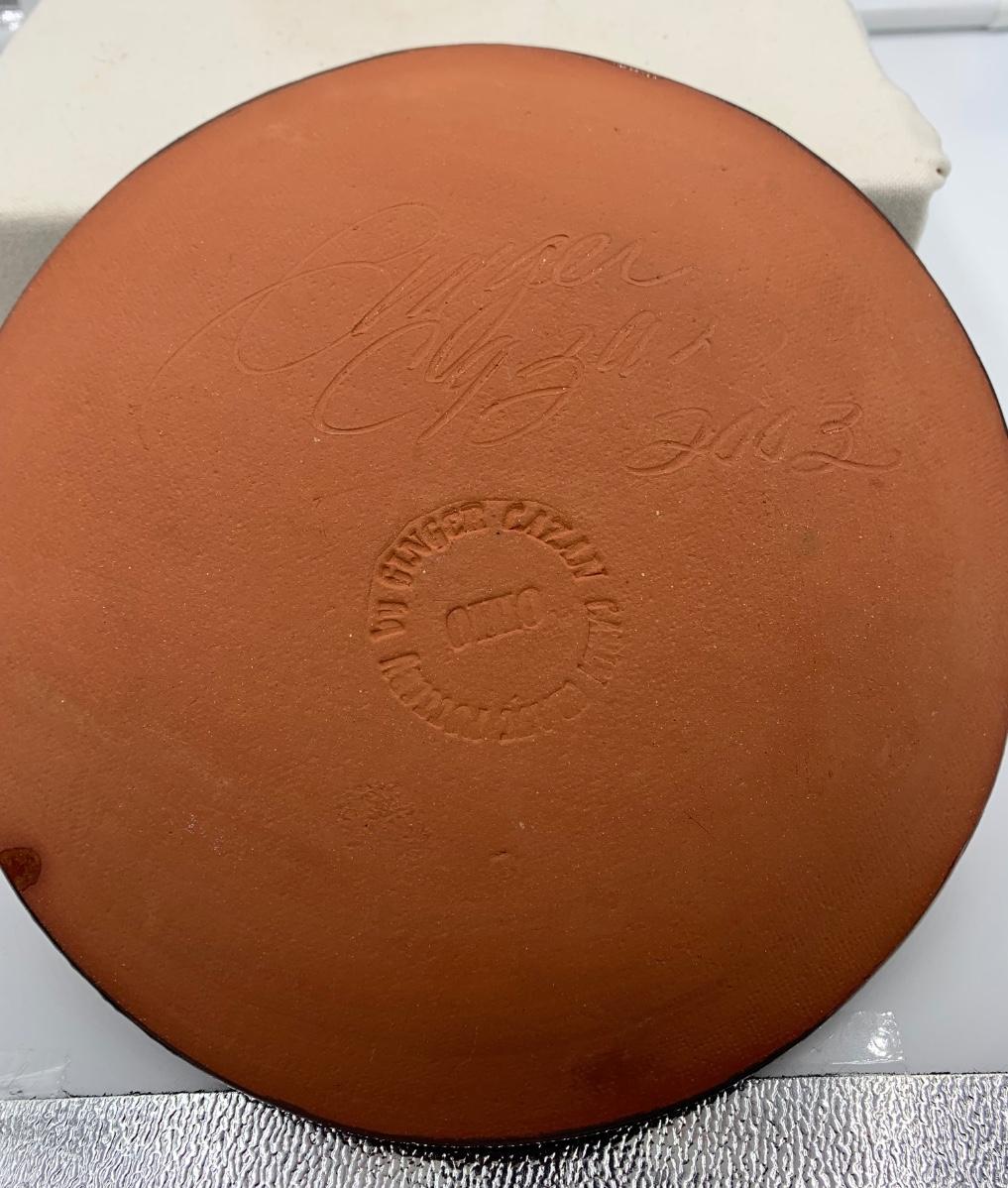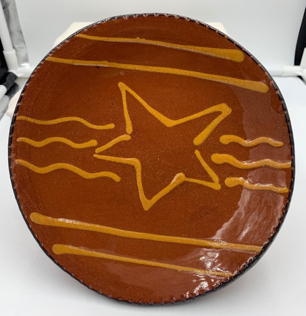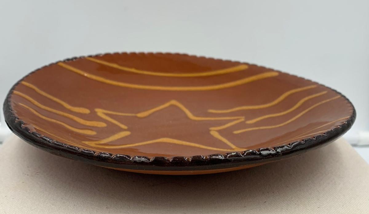 This pretty pottery plate looks amazing on a plate hanger or stand. Measuring 7.5” wide, this makes a great addition to your home or office!