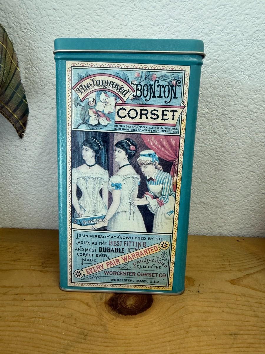 Decorative Repro Tin Canister The Improved Bon Ton Corset Worcester Corset Co
