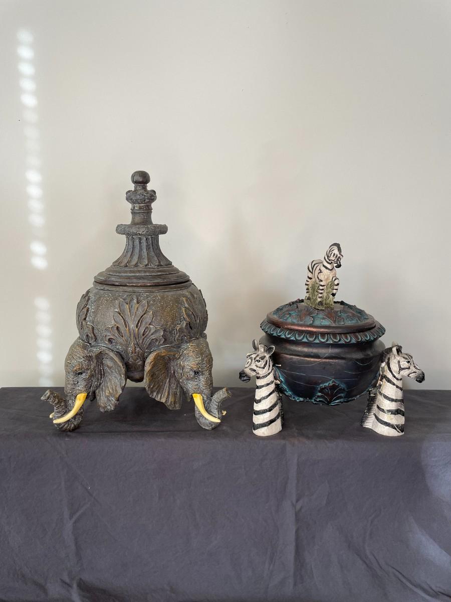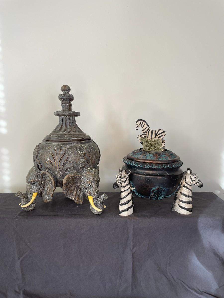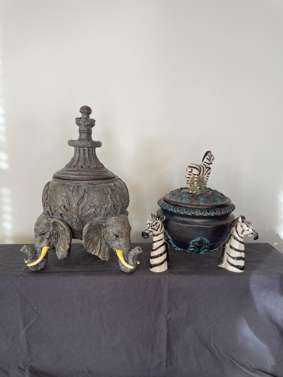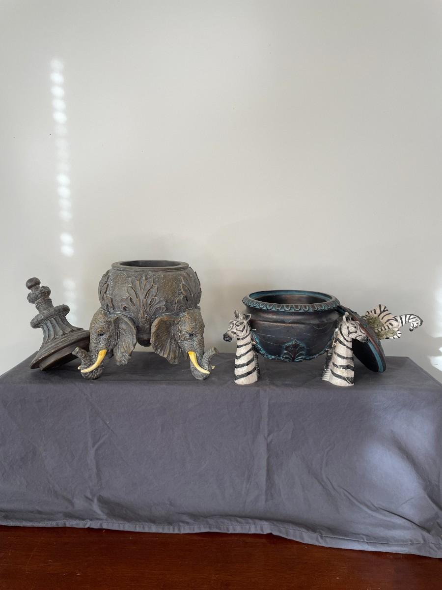 Giraffes and Elephants carvings. Largest measures. 11 1/2" H x 7 1/2 W.