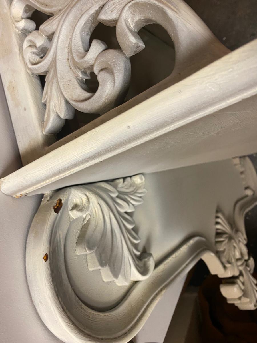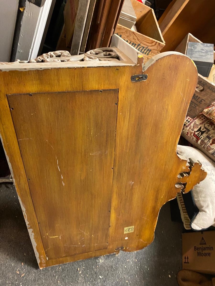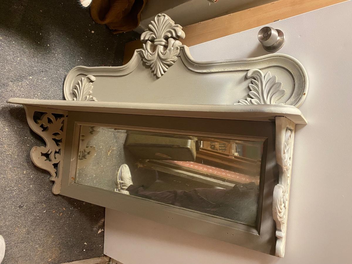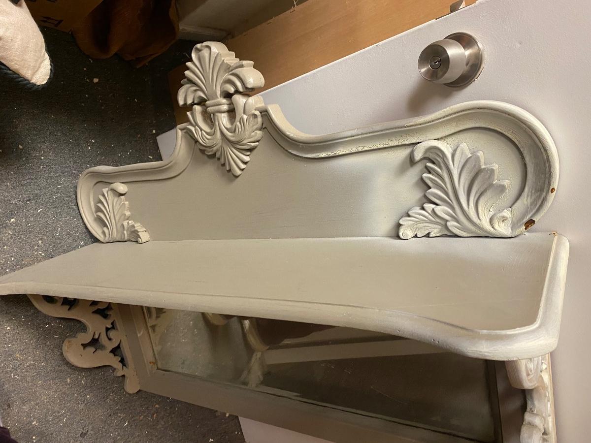 Hand painted, ornate trim, mirror for wall. Measures 36" W x 11" D x 28" H
