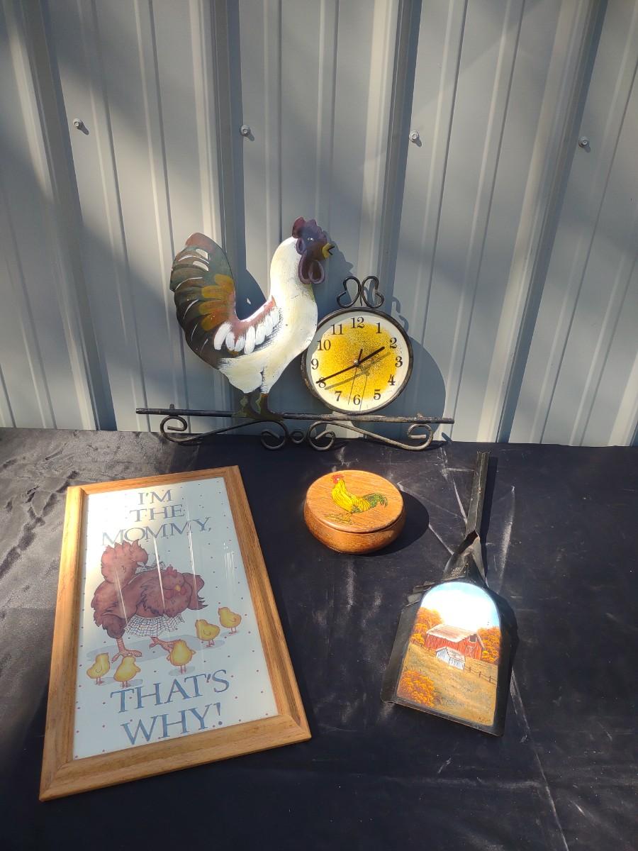 HAND PAINTED COAL SHOVEL & ROOSTER DECOR