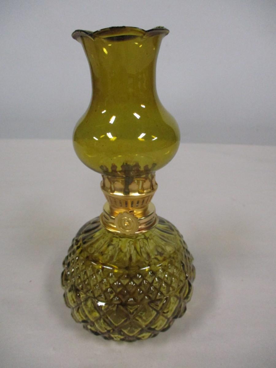 Decorative Small Amber Glass Oil Lamp 7 1/2" Tall
