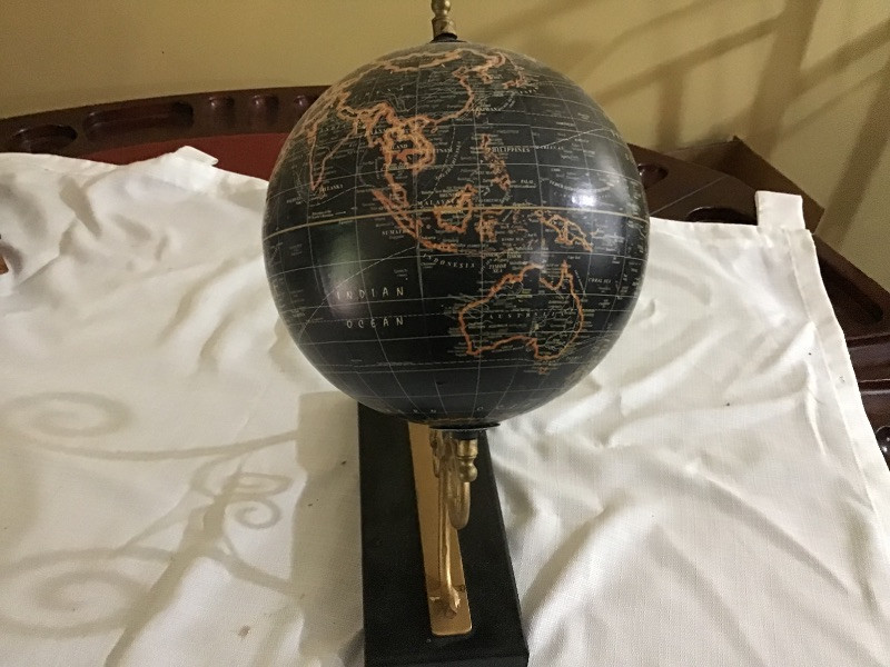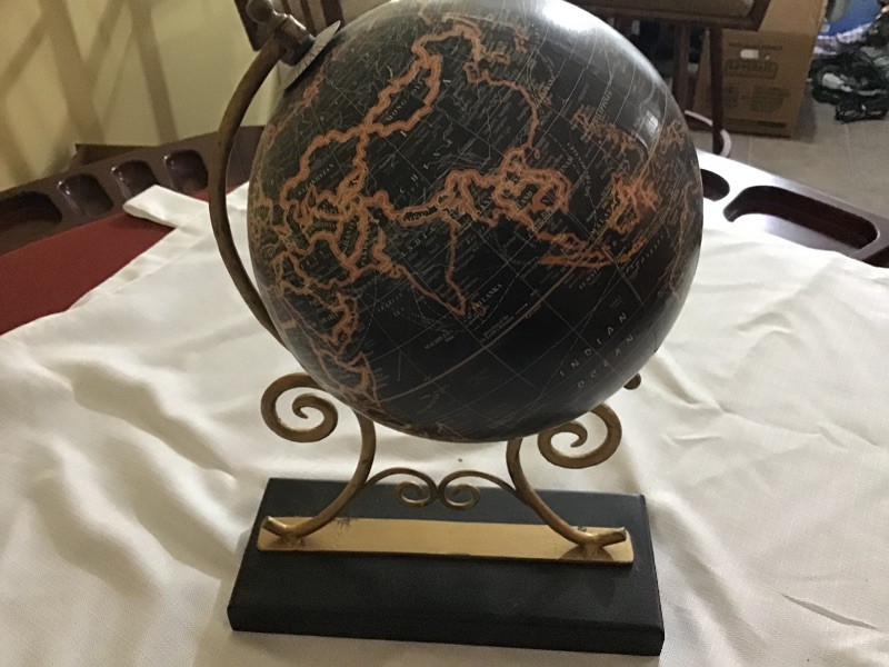 DECORATIVE SPINNING GLOBE APPROX 14 INCHES HIGH.