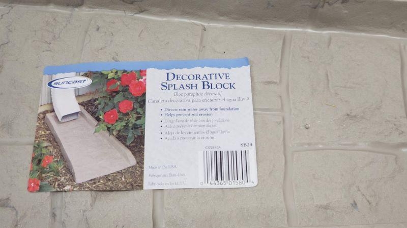 Decorative Splash Block, Directs Rain Water Away from Foundation - New