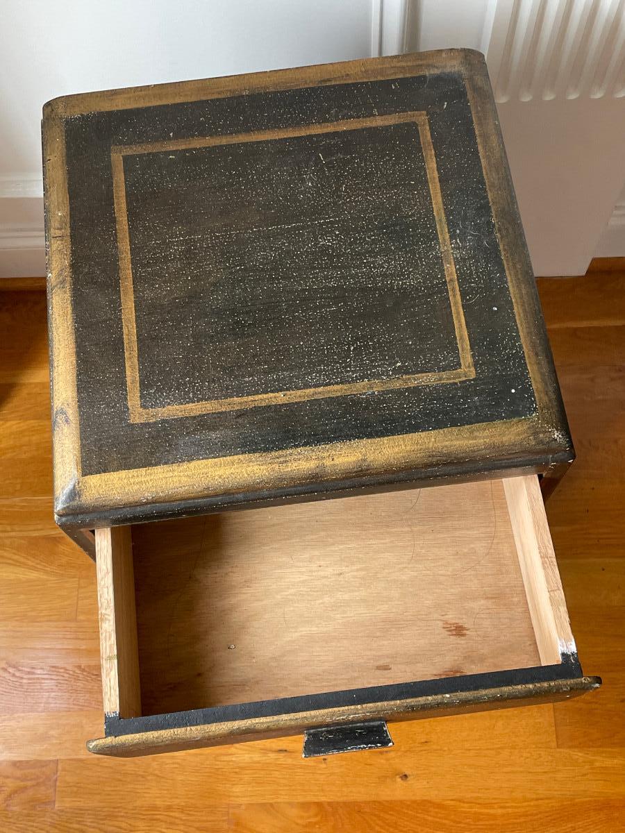 Functional drawer. Approximately 26.5 inches tall. Approximately 14” wide x 14” deep.
