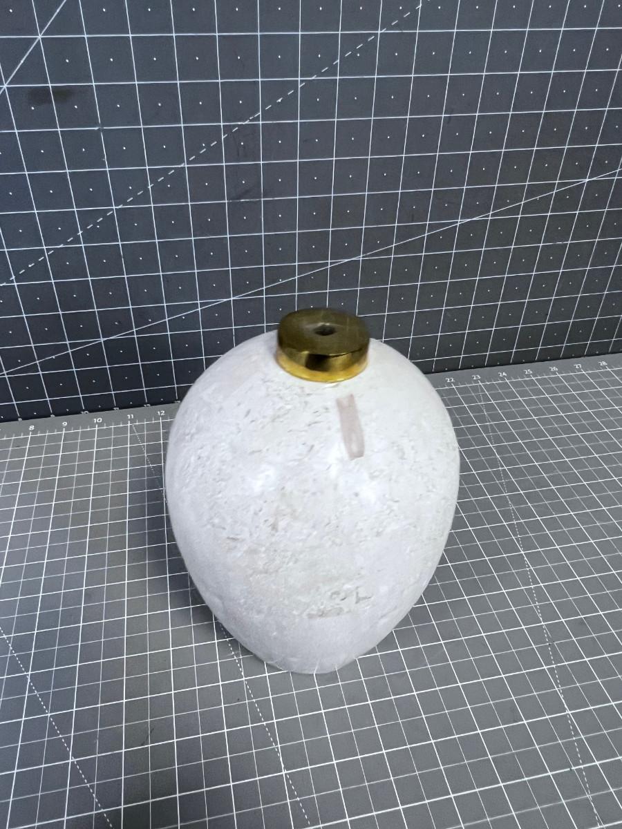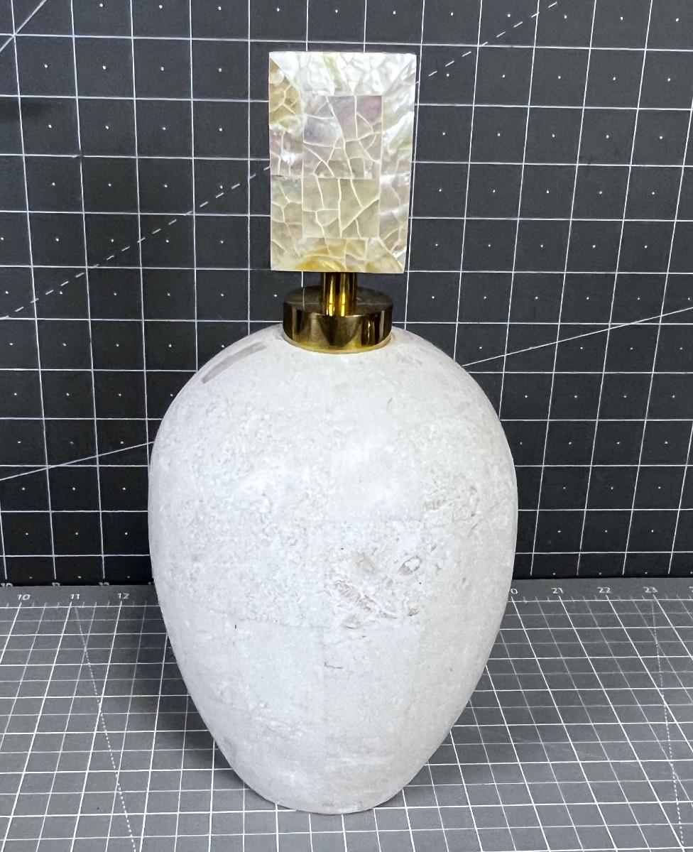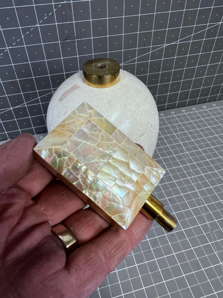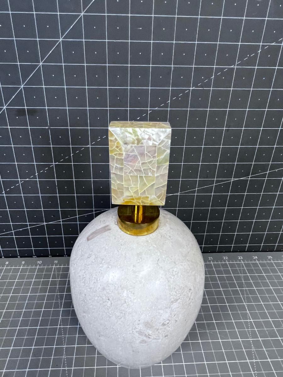 DECORATIVE STONE VASE AND BRASS TOP AND STOPPER