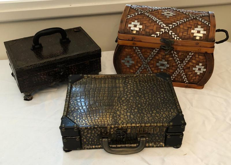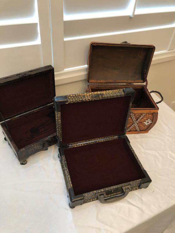 3 small decorative storage boxes. or trunks. If you require shipping please be aware that the cost of shipping may be more than what the item cost. All items ship from zip code 84109, you can go to USPS.com for estimates of cost.