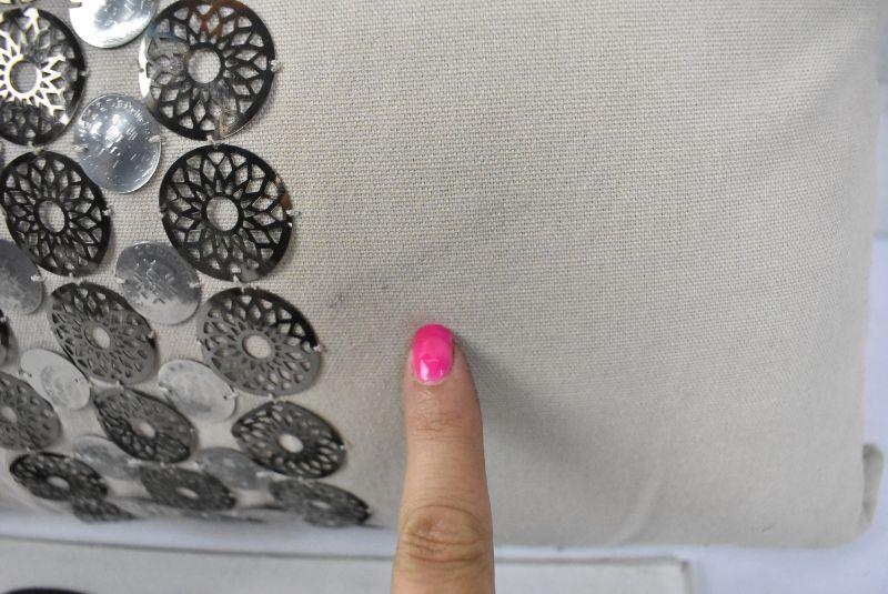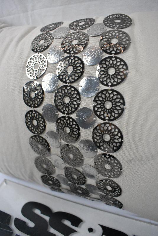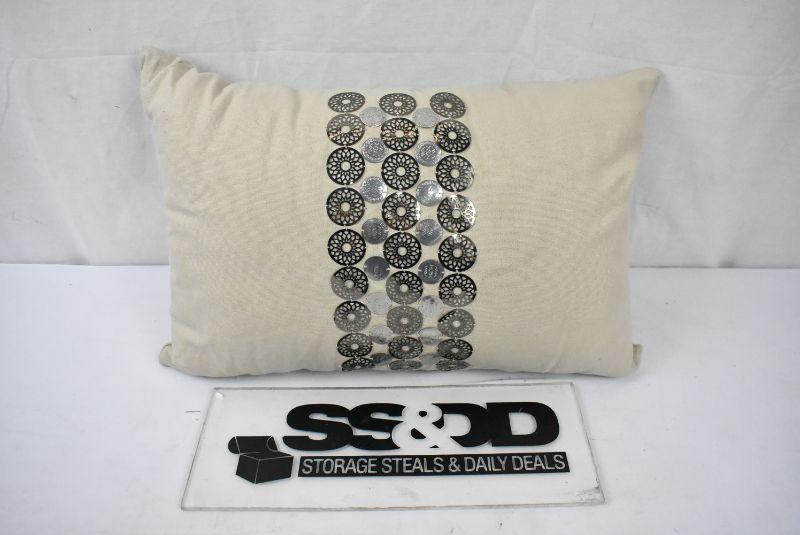 Decorative Throw Pillow, Tan with Metal Accents, 14x20
