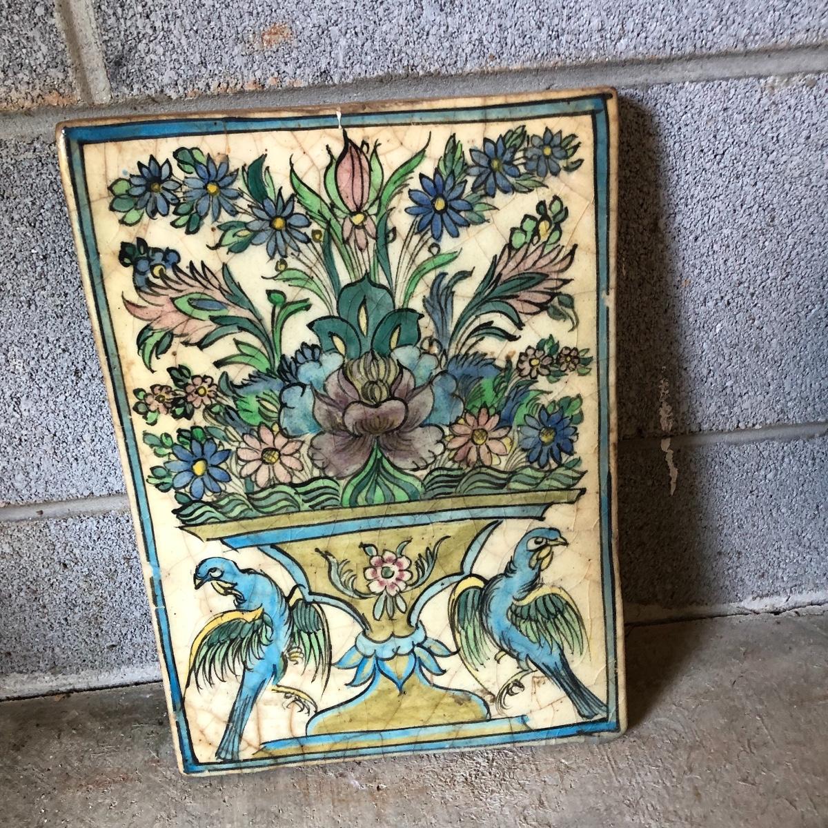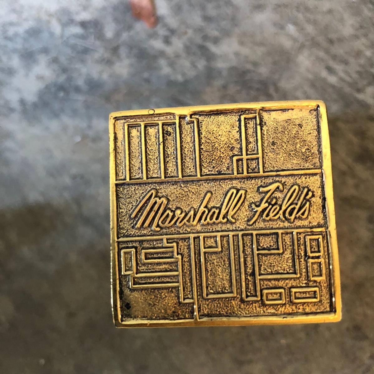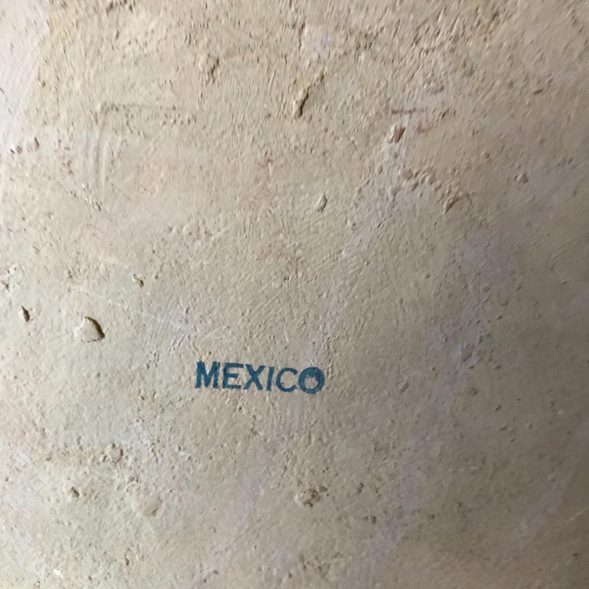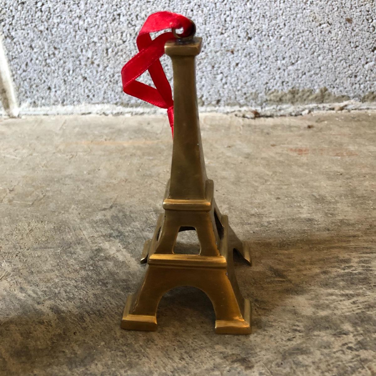 Lot includes decorative Mexican plate, decorative tile, English handmade wood print , petrified wood and a brass Eiffel Tower and Marshall Fields Bell. Plate measures 15.5”D.