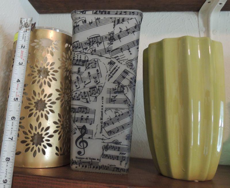 ..8 to 10" tall: gold and clear, music theme, ruffled green