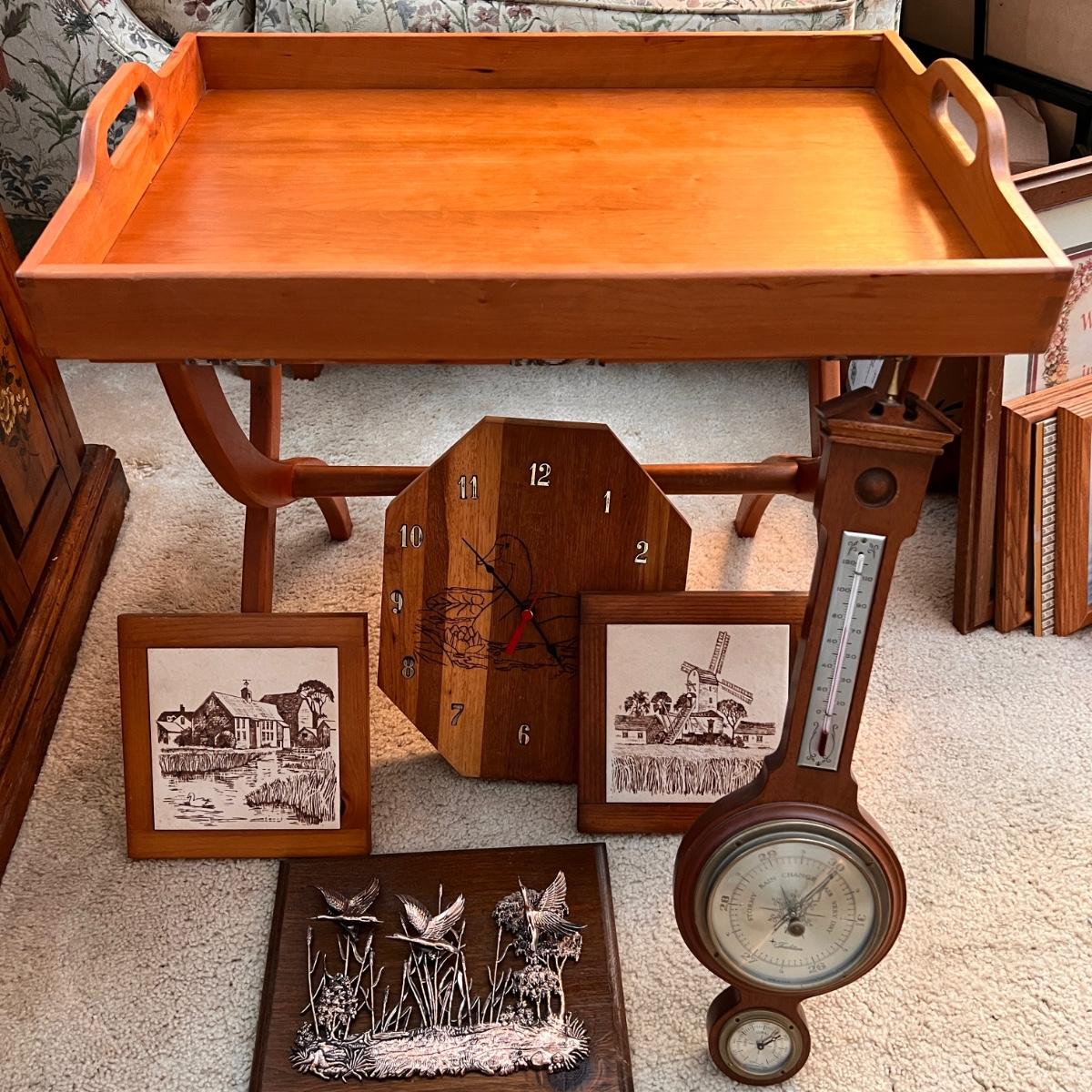 Decorative Vintage Wood Lot - Tray, Art, Clock