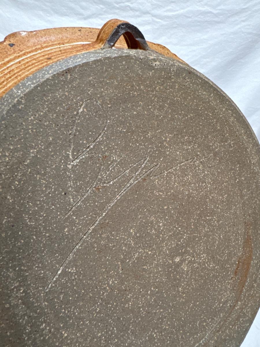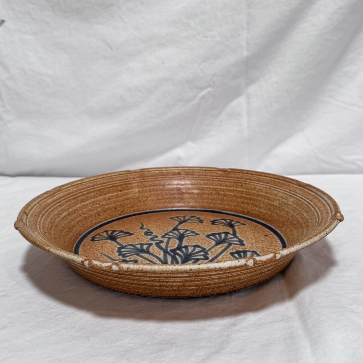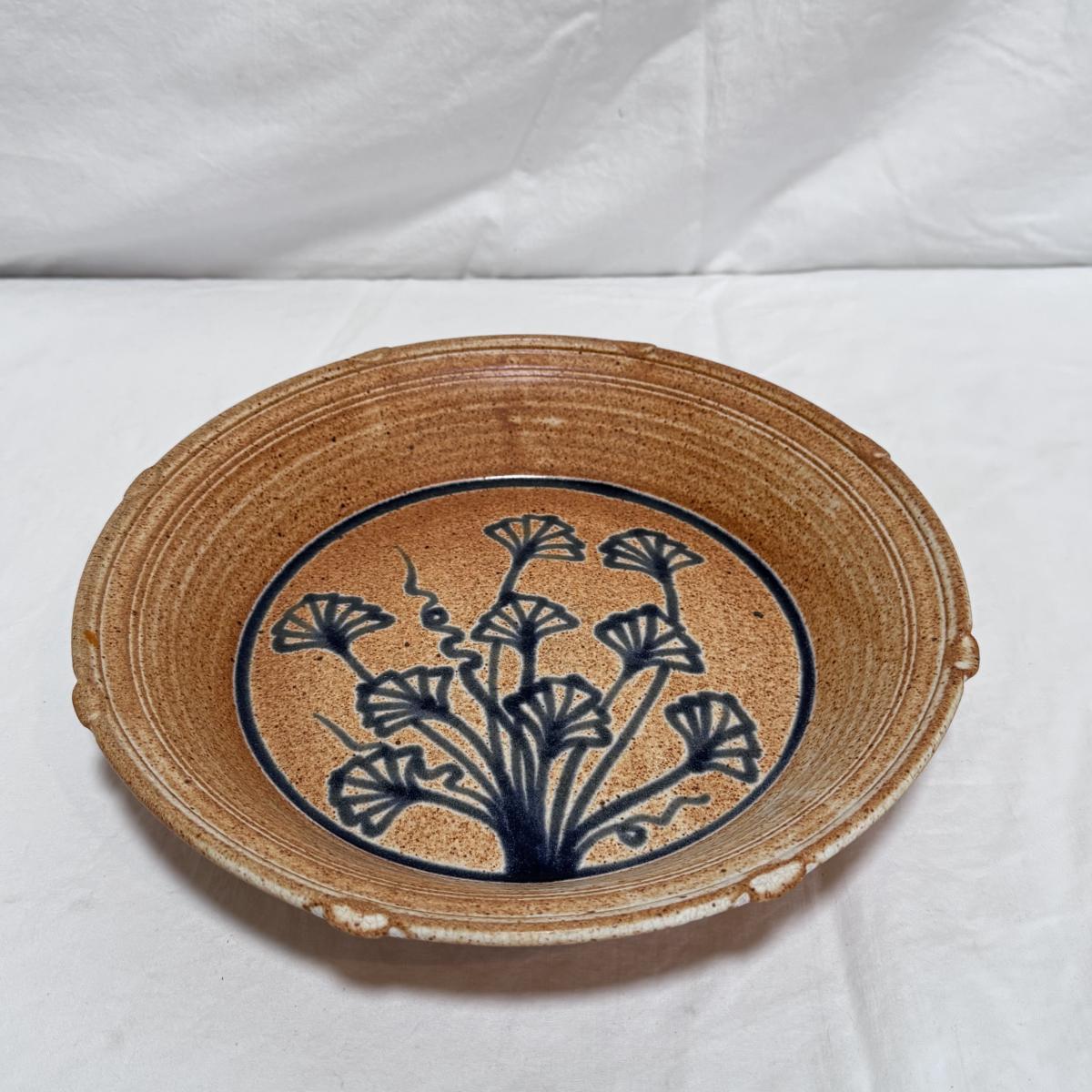 This lot includes one decorative wall hanging ceramic dish with blue flowers painted on the front. The dish measures 10.95”D x 1.95”H and is signed on the back. Shipping available.