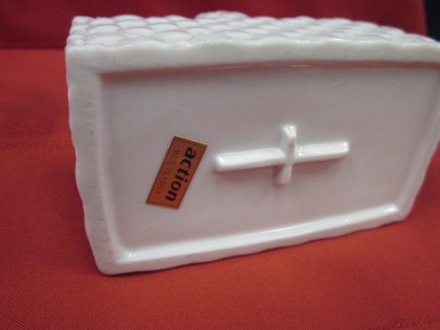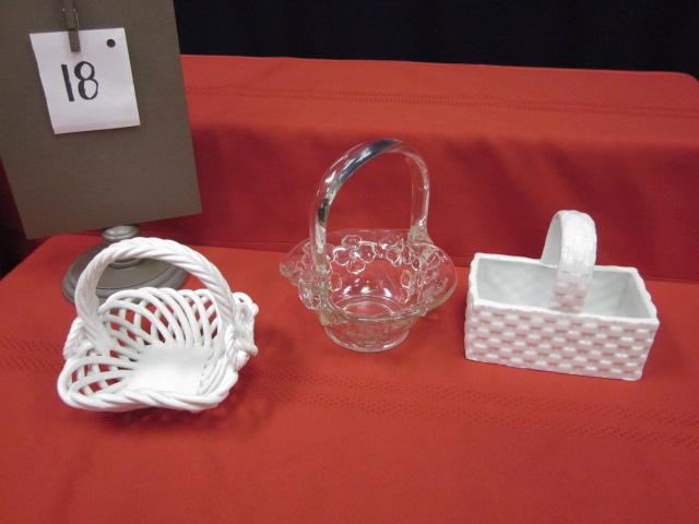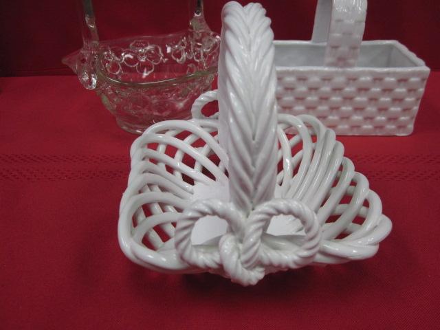 Decorative White Basket -(1) Square, (1) Oblong, and Crystal Basket, 3 pcs