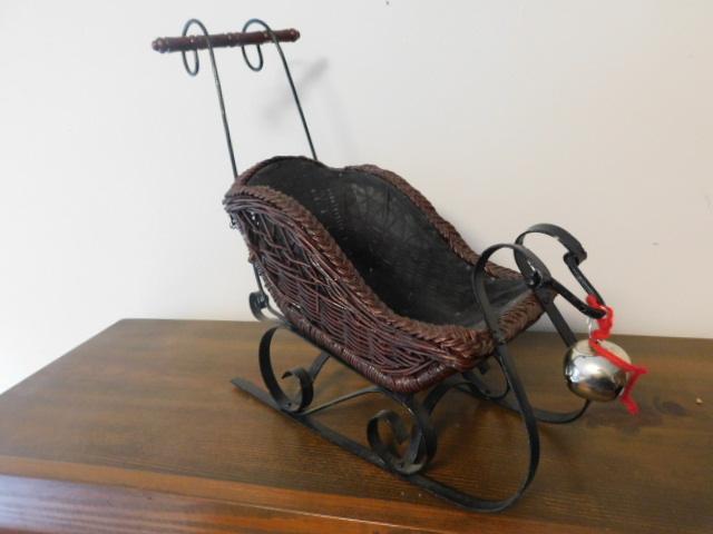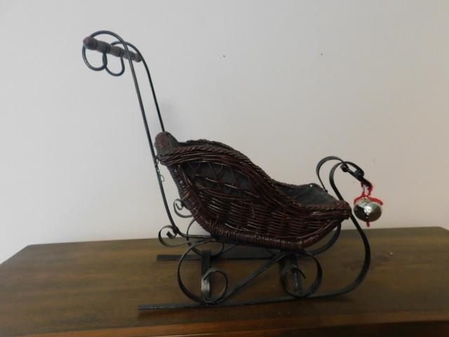 Decorative Wicker Weave Sleigh with Metal Runners 13"