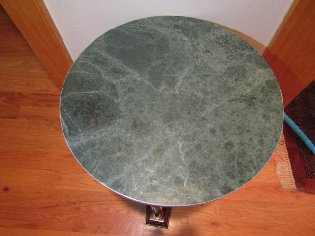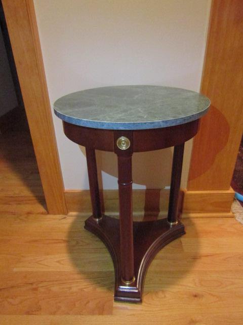 Decorative Wood and Marble Accent Table- Approx 18" Across