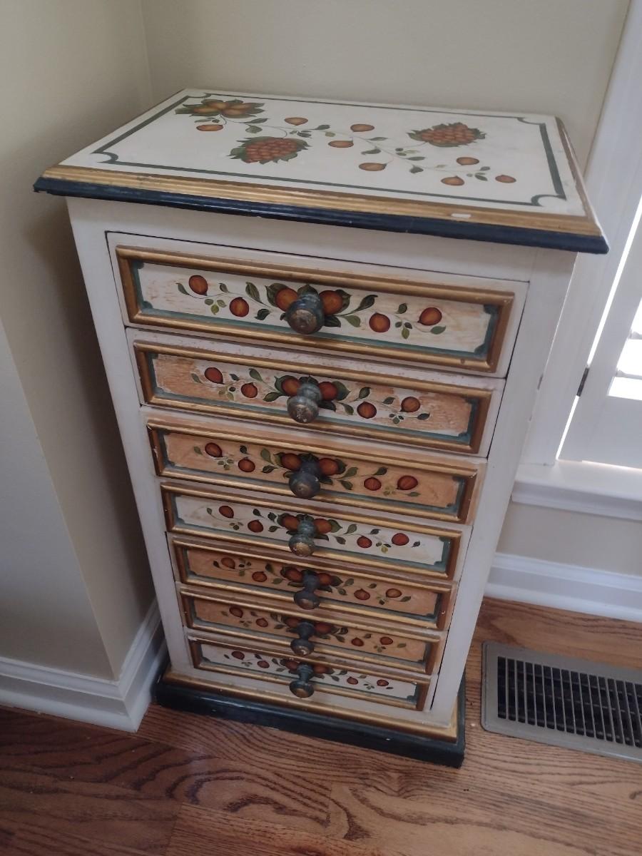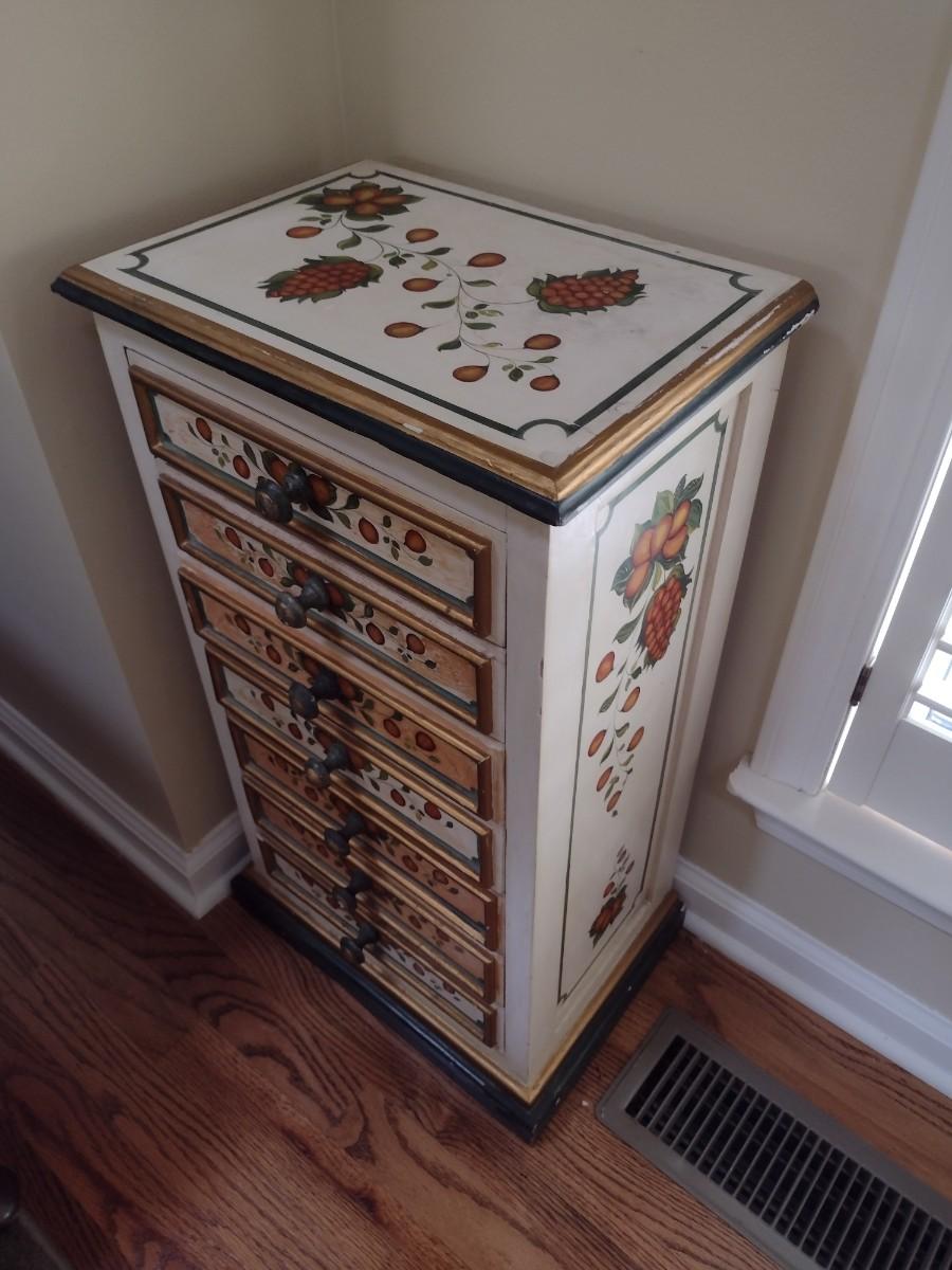 Decorative Wood Finish Seven Drawer Jewelry Armoire or Notions Dresser
