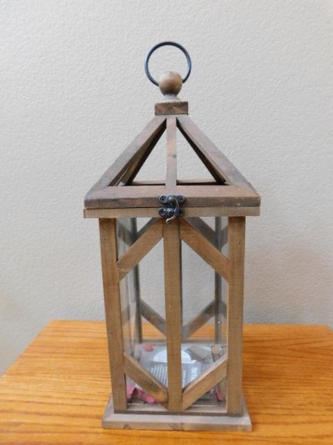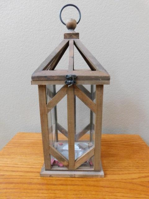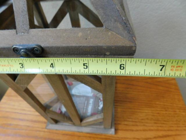 Decorative Wood Frame Glass Panel Tealight Lantern 6"x6"x16"