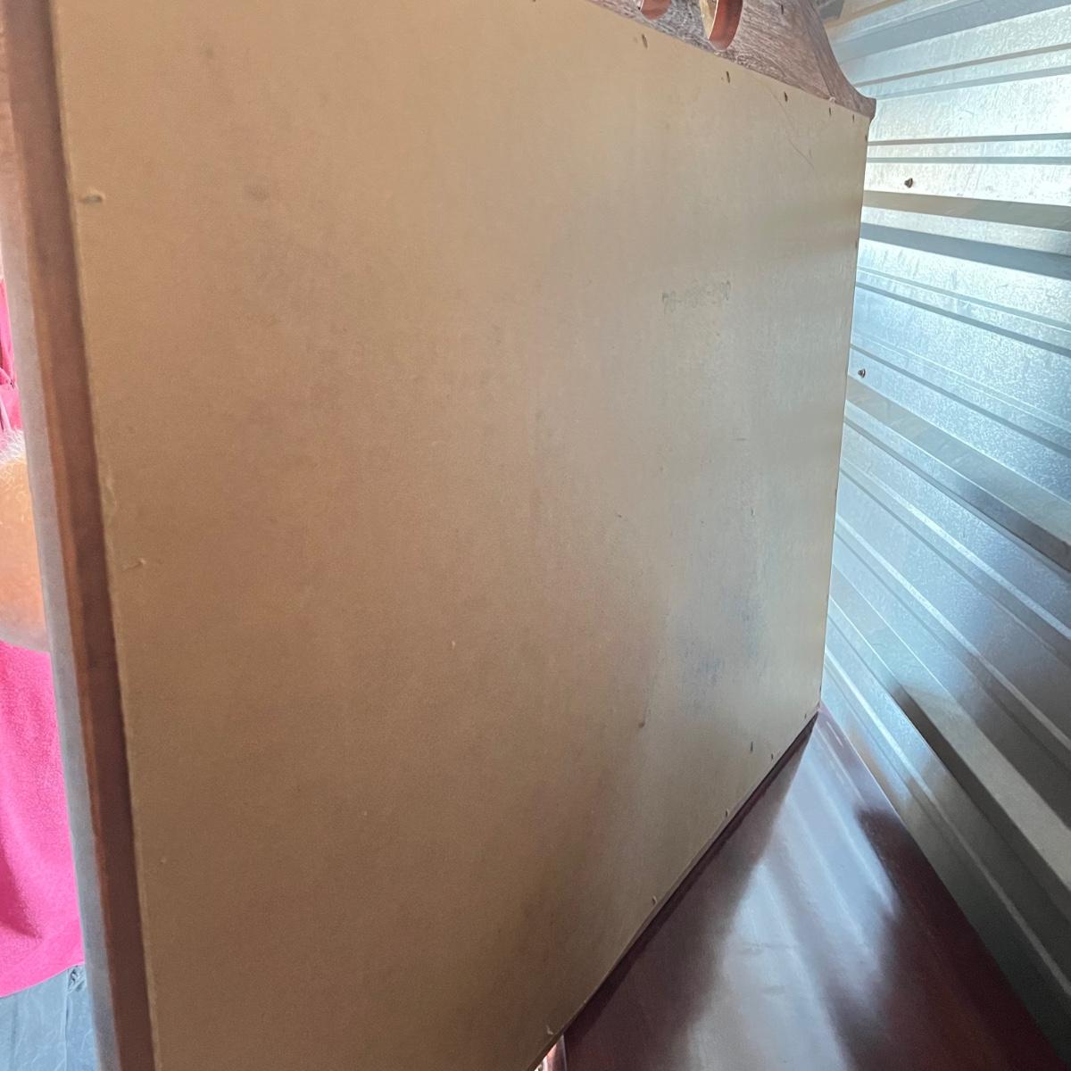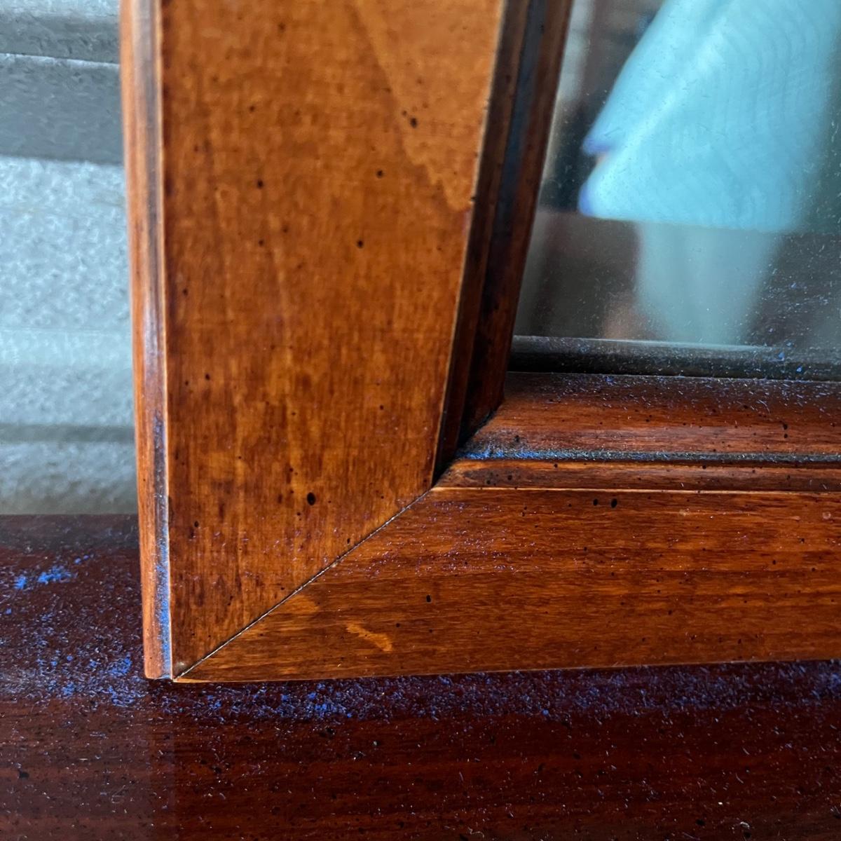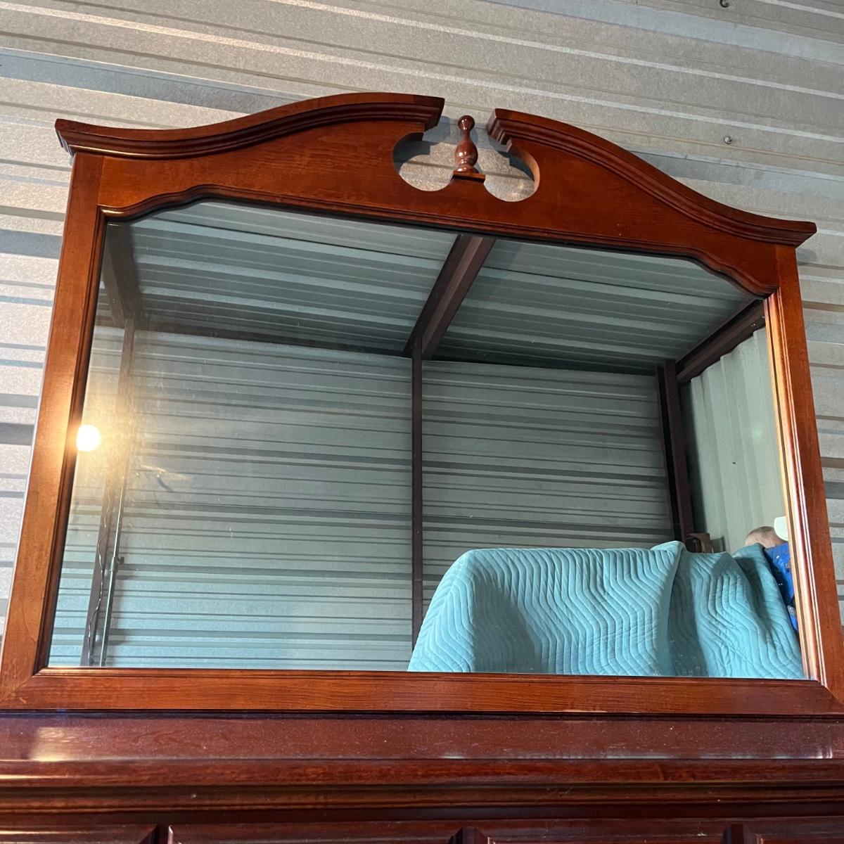 Lot includes a decorative wood frame mirror. Frame measures 40” x 52” x 2”.