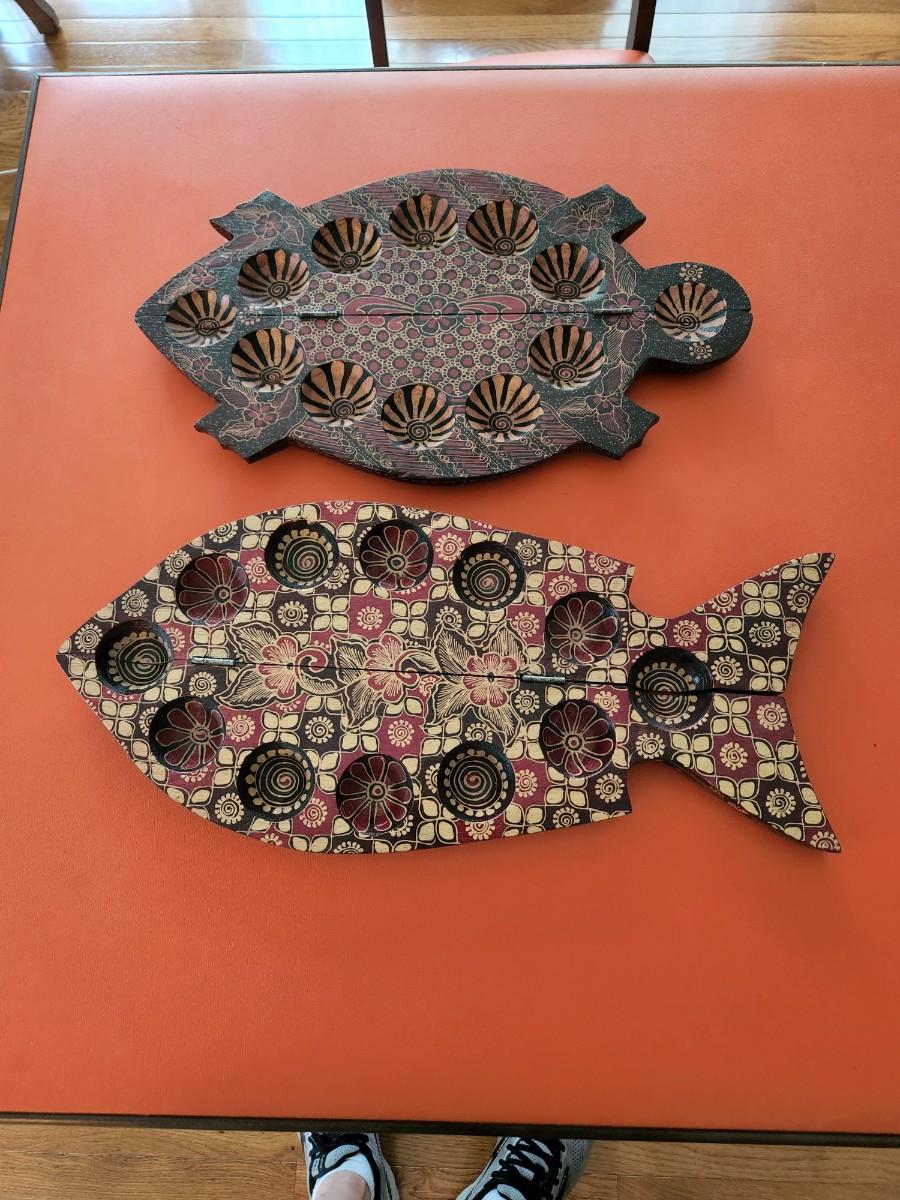 Decorative Turtle & Fish Pysanky Ukraine Hand Made Wood Egg Display Trays