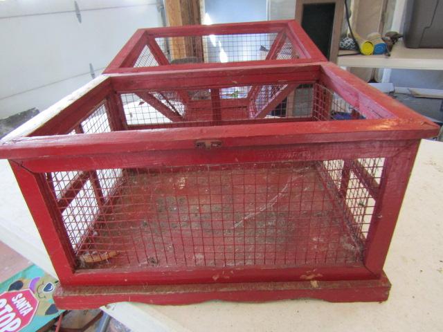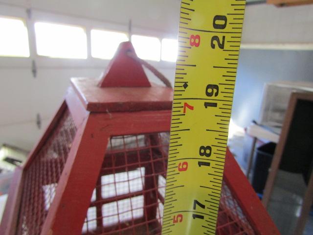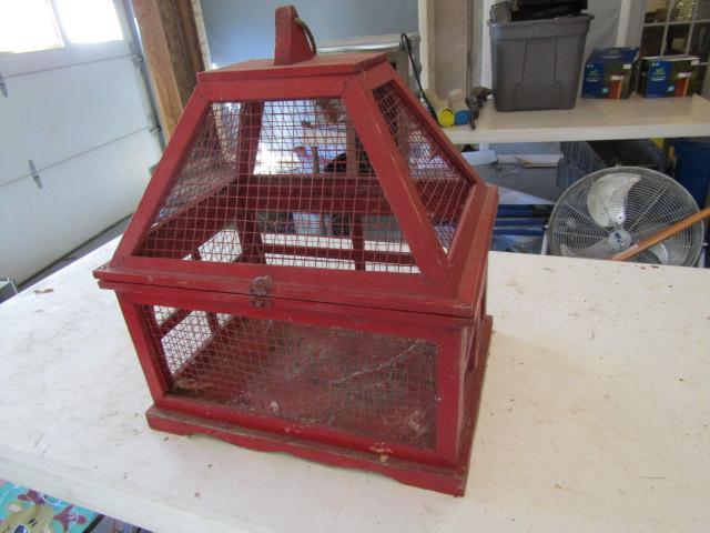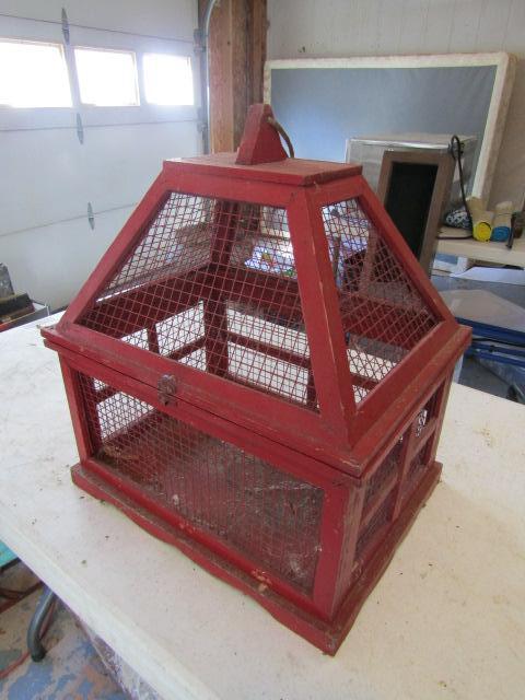 Decorative Wooden and Wire Birdcage. Needs cleaning. Some small pieces of wood are loose/broken. Please see all pictures.