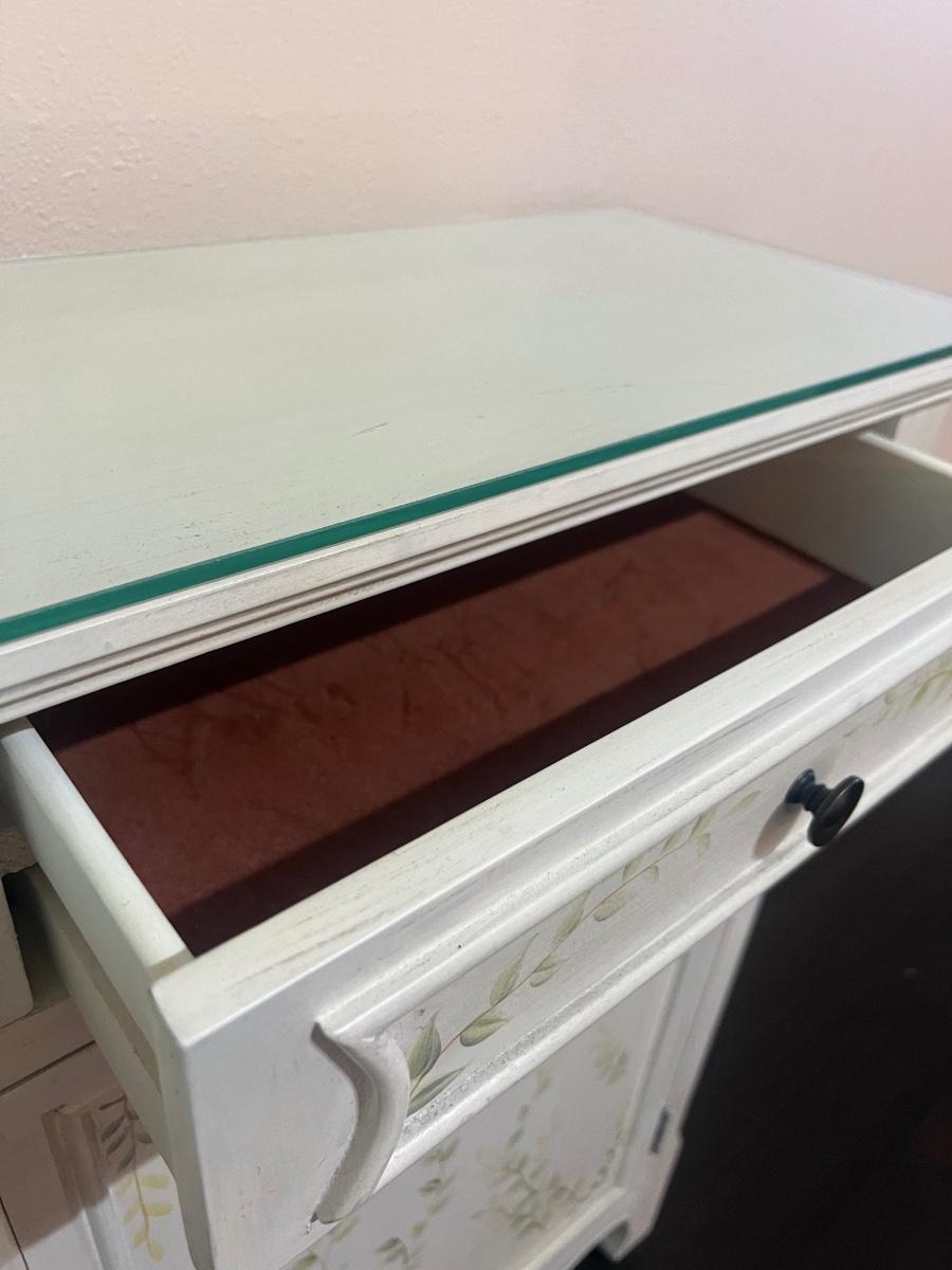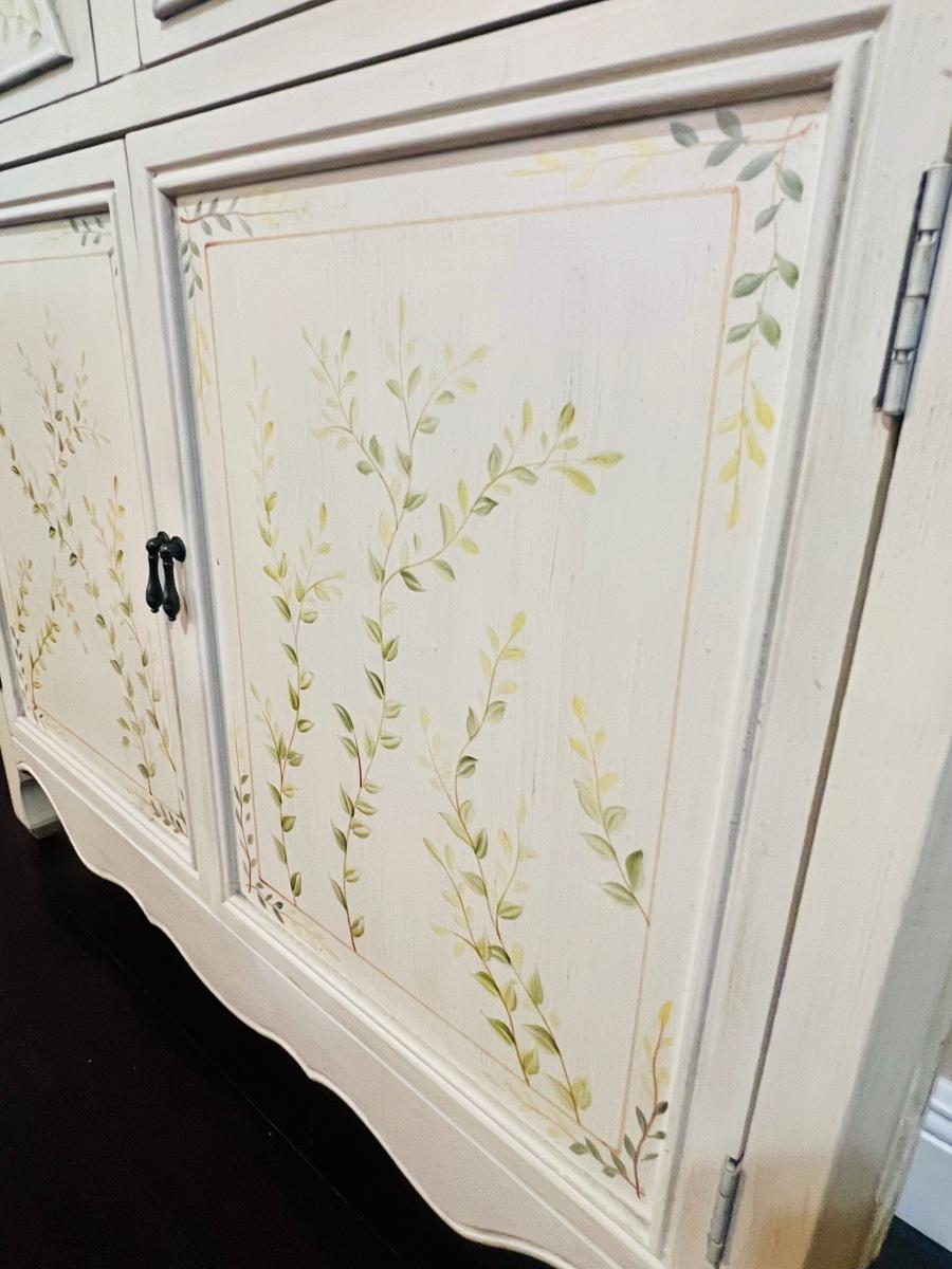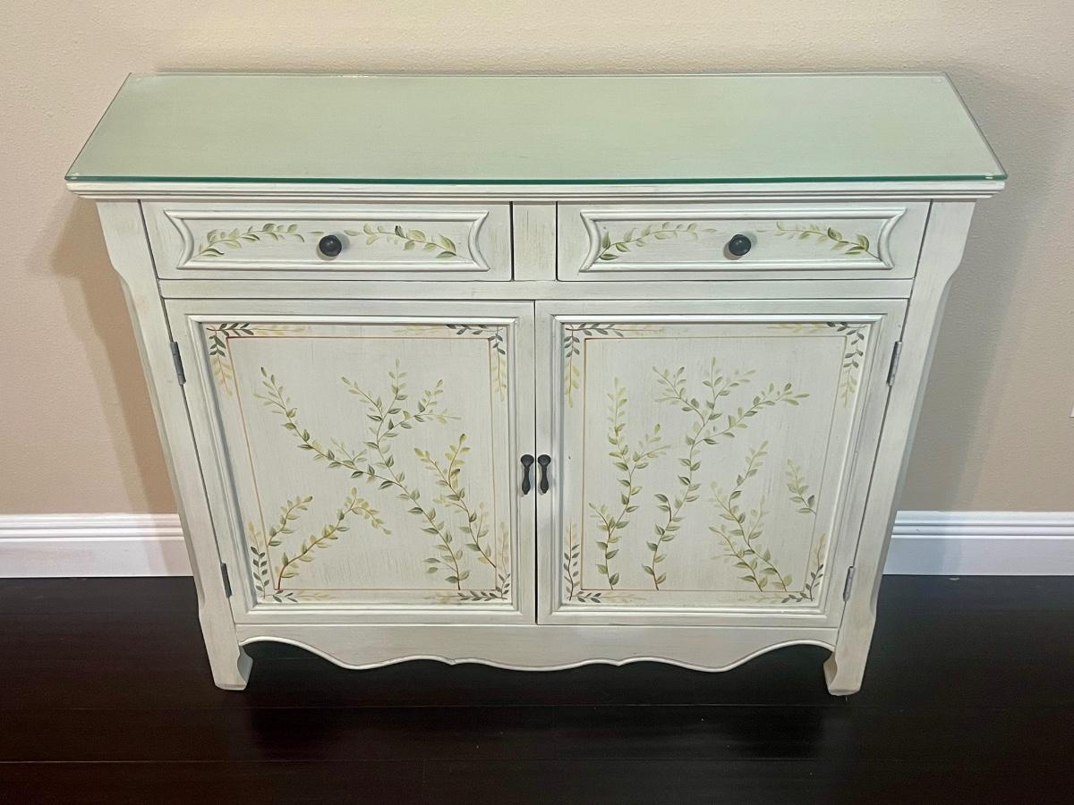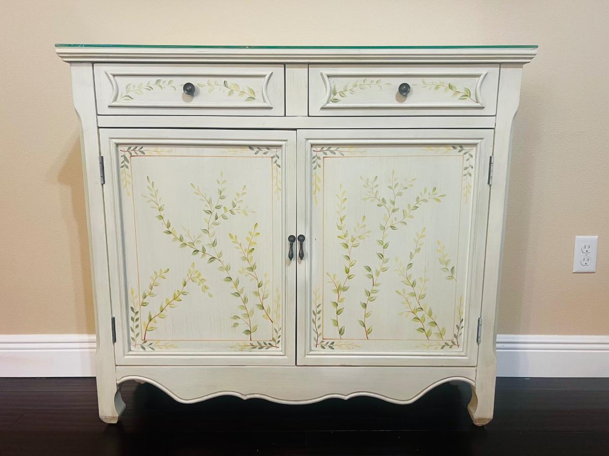 Decorative wooden cabinet. Top drawers are felt lined. Please see all pictures. Measures 41” W x 11”D x 36”T