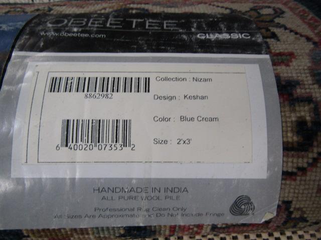 Decorative wool area rug. Made by Obeetee Classic. Measures approximately 2 feet by 3 feet.