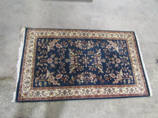 Decorative wool area rug. Approximately 3 feet by 5 feet.