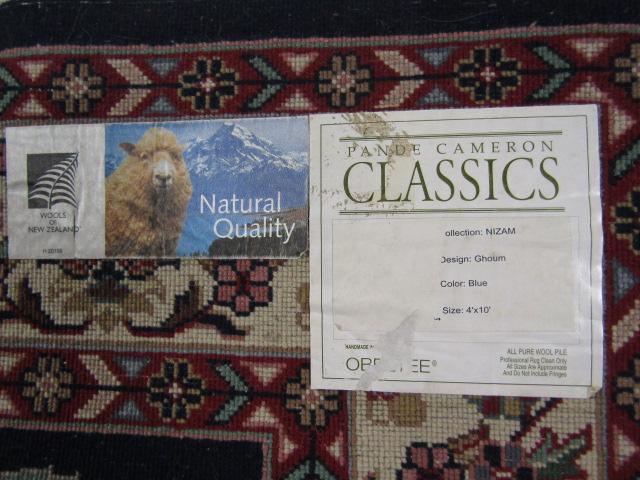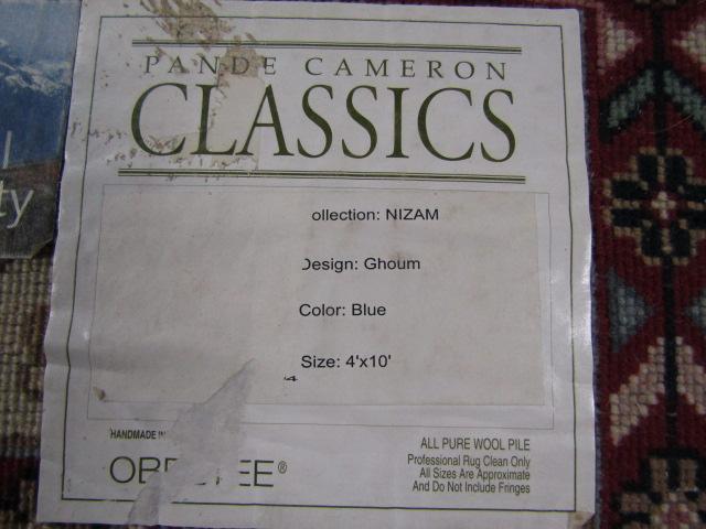 Decorative wool area rug runner. Made by Pande Cameron Classics. Approximately 4 feet by 10 feet.